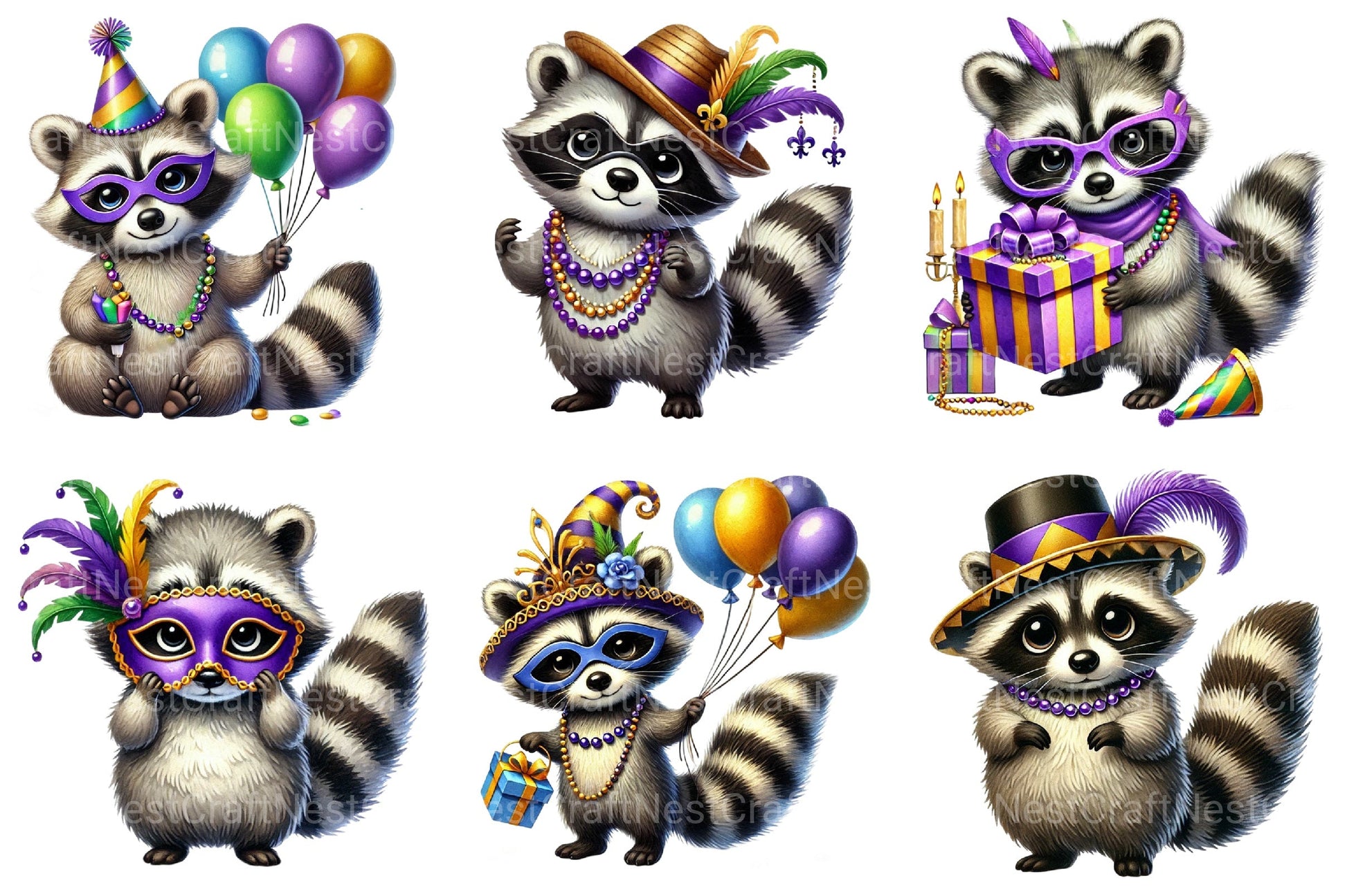 Mardi Gras Raccoon Clipart Bundle 1