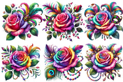 Bloom with this Mardi Gras Rose Clipart Bundle, featuring festive rose designs, ideal for elegant carnival crafts.
