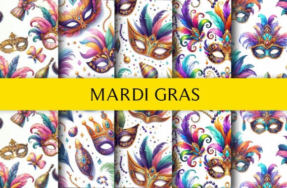 Celebrate with this Mardi Gras Seamless Digital Paper, featuring festive patterns, perfect for party decor.