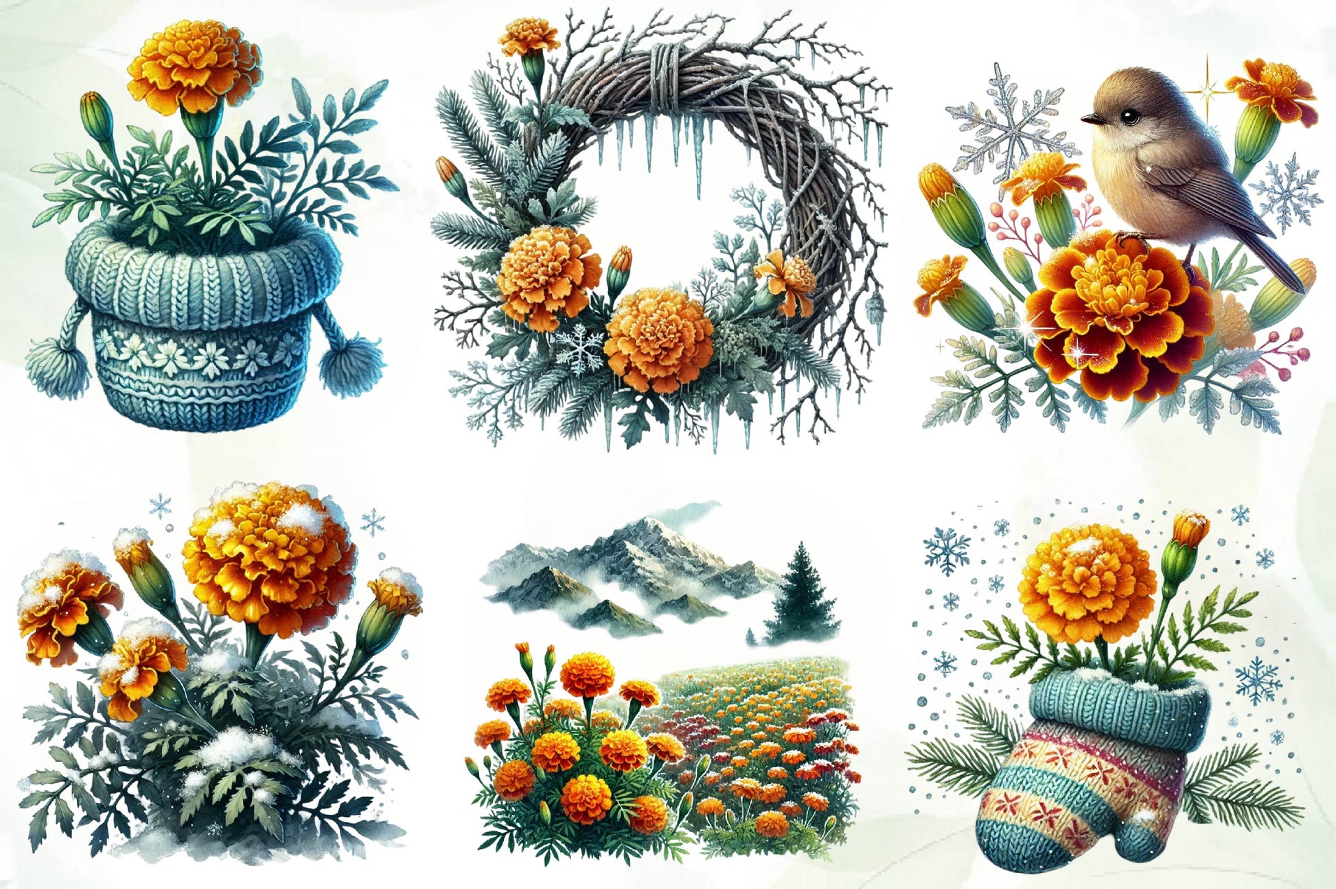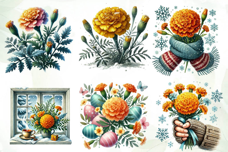 Marigold Chilly Spring Day Clipart Bundle