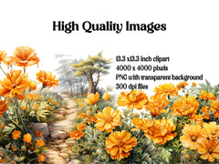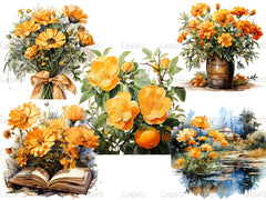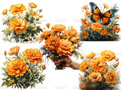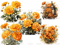Experience the magic of autumn with our Marigold Magic clip art. These digital illustrations feature vibrant marigold blooms, perfect for adding a touch of seasonal vibrancy and floral charm to your designs, whether for fall-themed decorations, floral arrangements, or botanical creations, celebrating the radiant allure of marigolds in the enchanting palette of autumn hues.