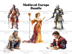 Step into the medieval era with our Medieval Europe clip art. These evocative digital illustrations depict knights, castles, peasants, and merchants, offering a glimpse into the feudal society and tumultuous history of medieval Europe, perfect for adding a sense of romance and intrigue to your creative projects.