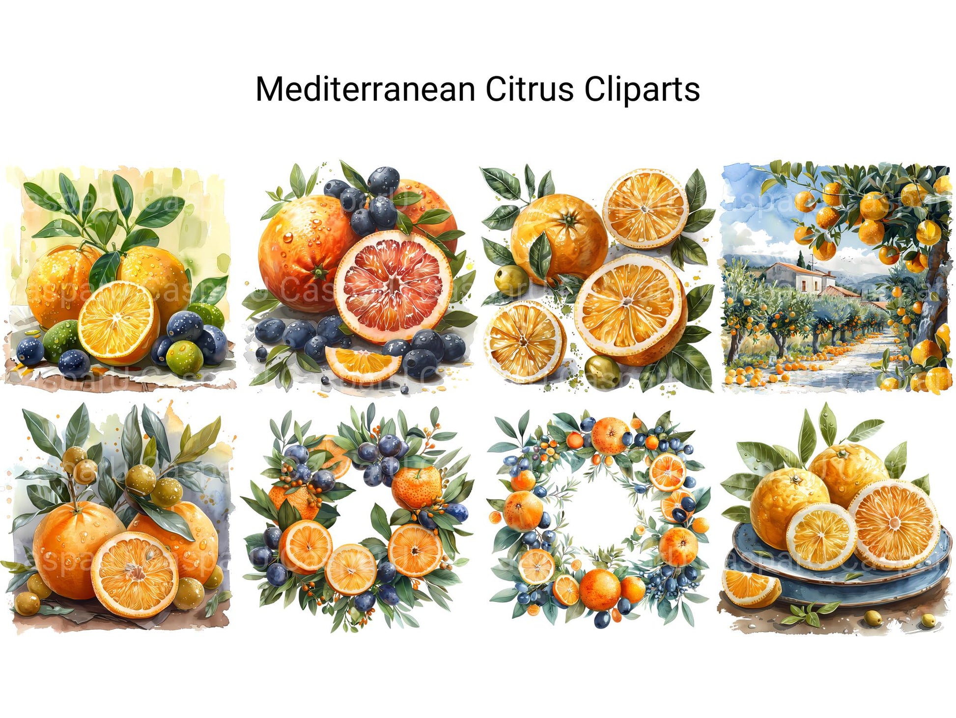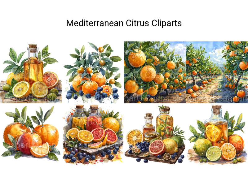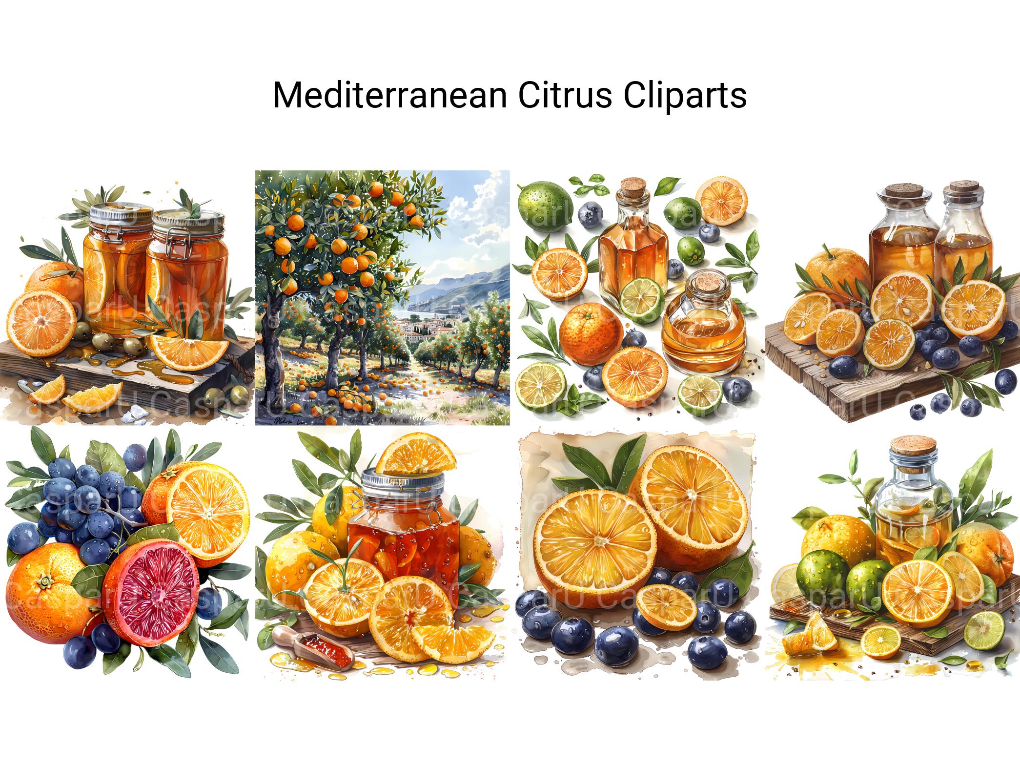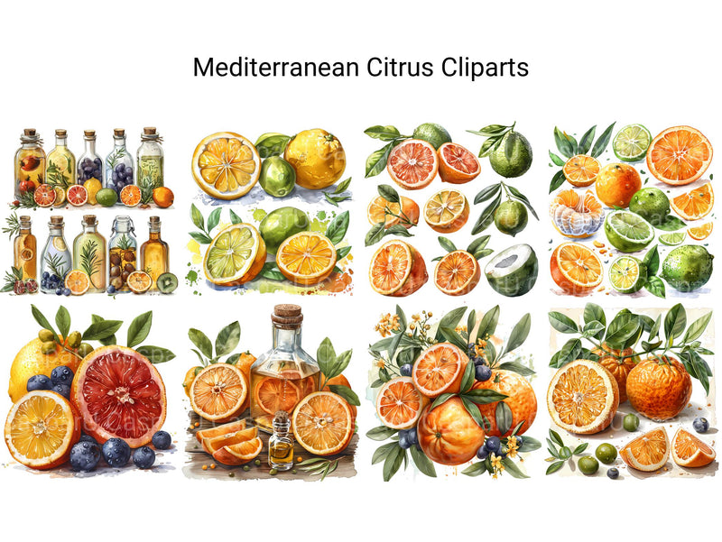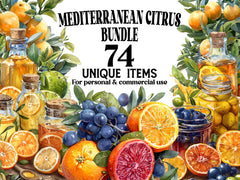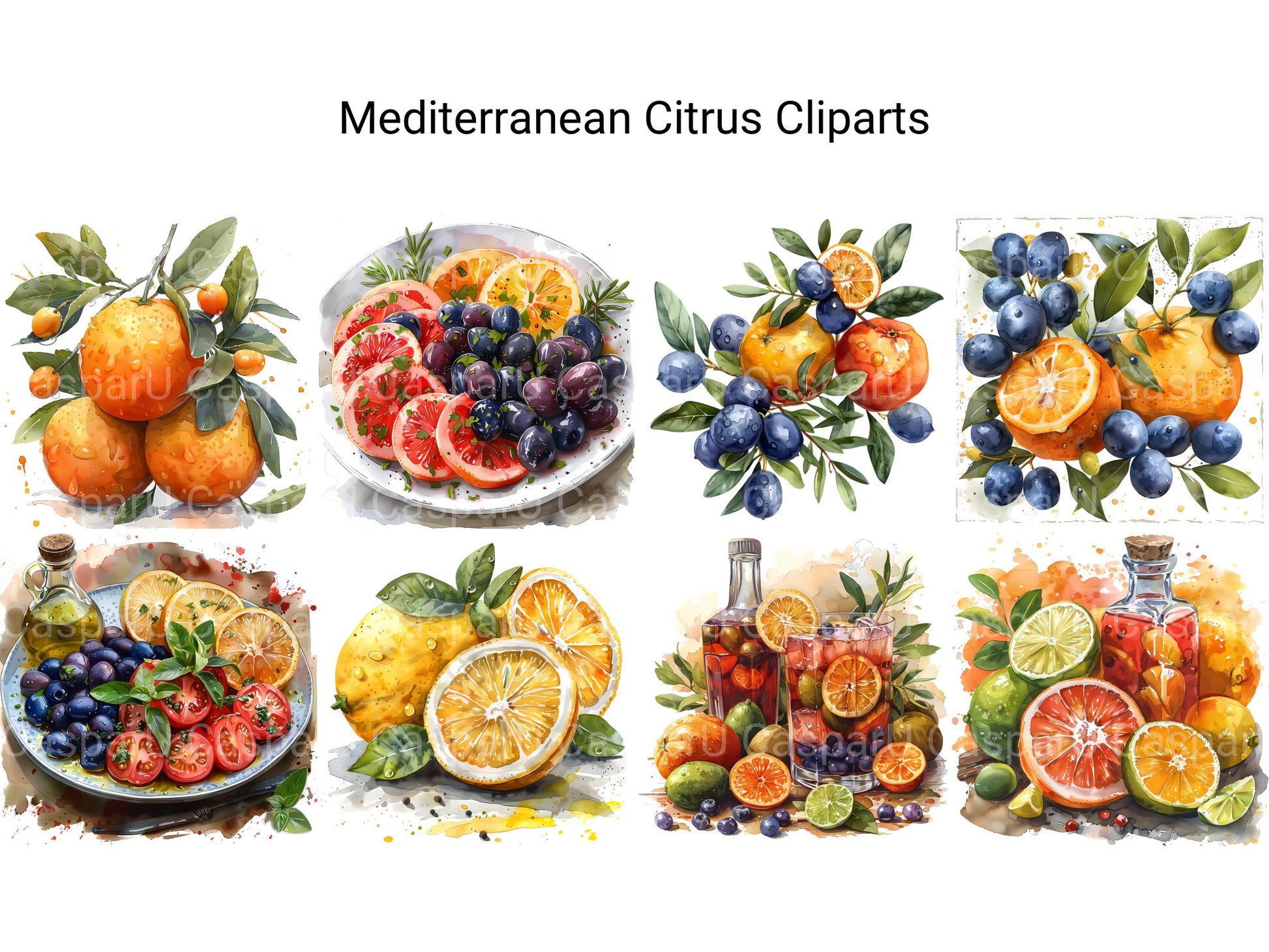 Add a refreshing touch with our Mediterranean Citrus clipart. Featuring a variety of citrus fruits like lemons and oranges in vibrant colors, this set brings a lively and sunny feel to your projects. Ideal for citrus-themed or summer designs.