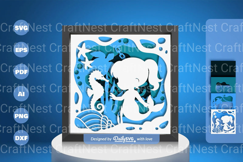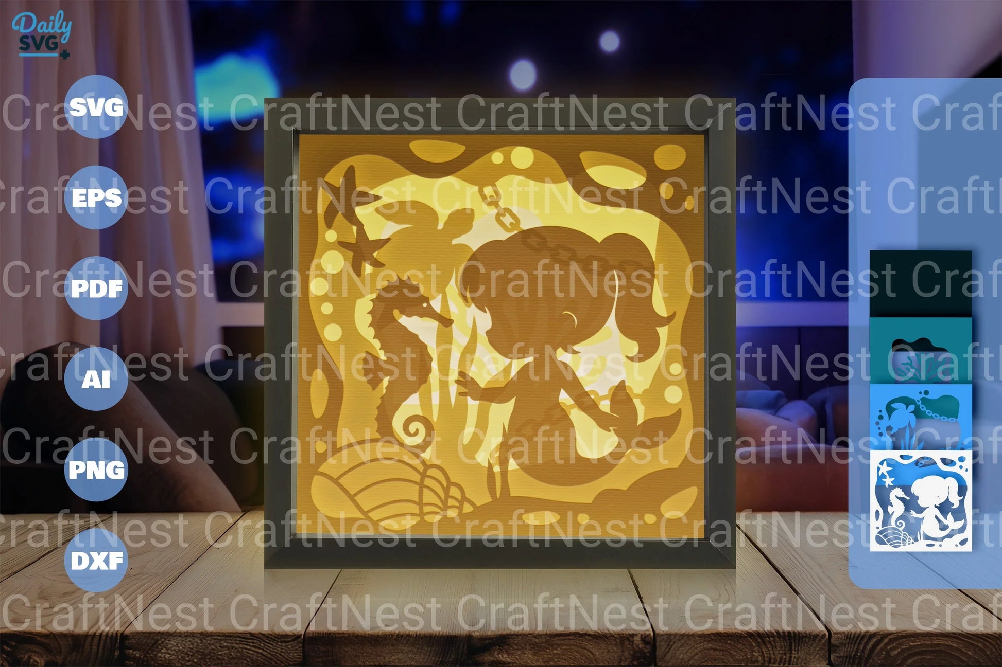 Unleash creativity with the Mermaid Kid Papercut SVG Bundle, featuring charming mermaid designs perfect for whimsical nursery projects and enchanting DIY crafts.