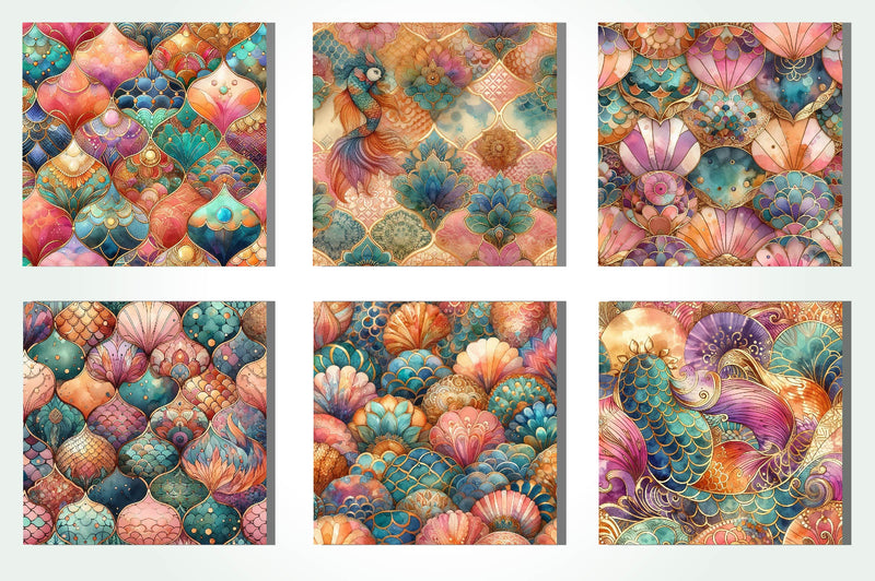 Pattern with this Mermaid Pattern Background Bundle, featuring oceanic mermaid designs, perfect for sea fantasy crafts.