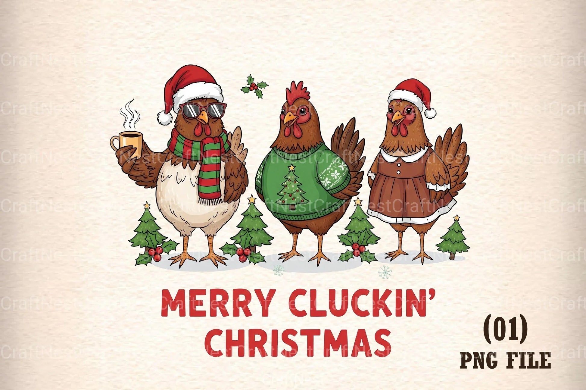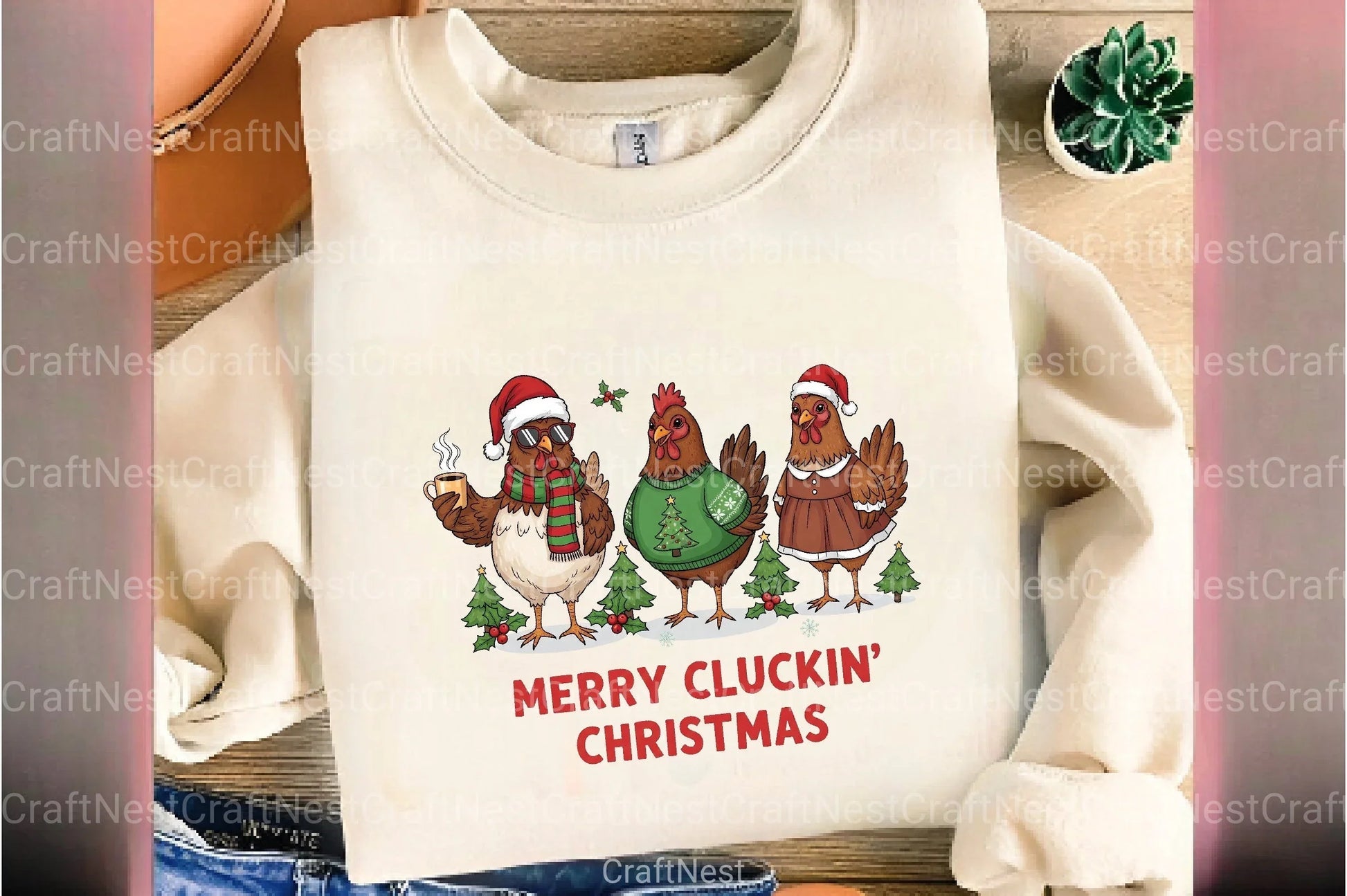 Celebrate the holidays with the Merry Cluckin' Christmas Chicken Clipart Bundle, featuring charming chicken designs perfect for festive crafts and seasonal projects.