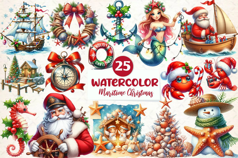 Celebrate the season with our Merry Maritime Christmas Clipart Bundle, featuring charming nautical-themed designs perfect for festive crafts, holiday cards, and seasonal decorations.