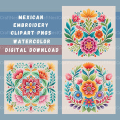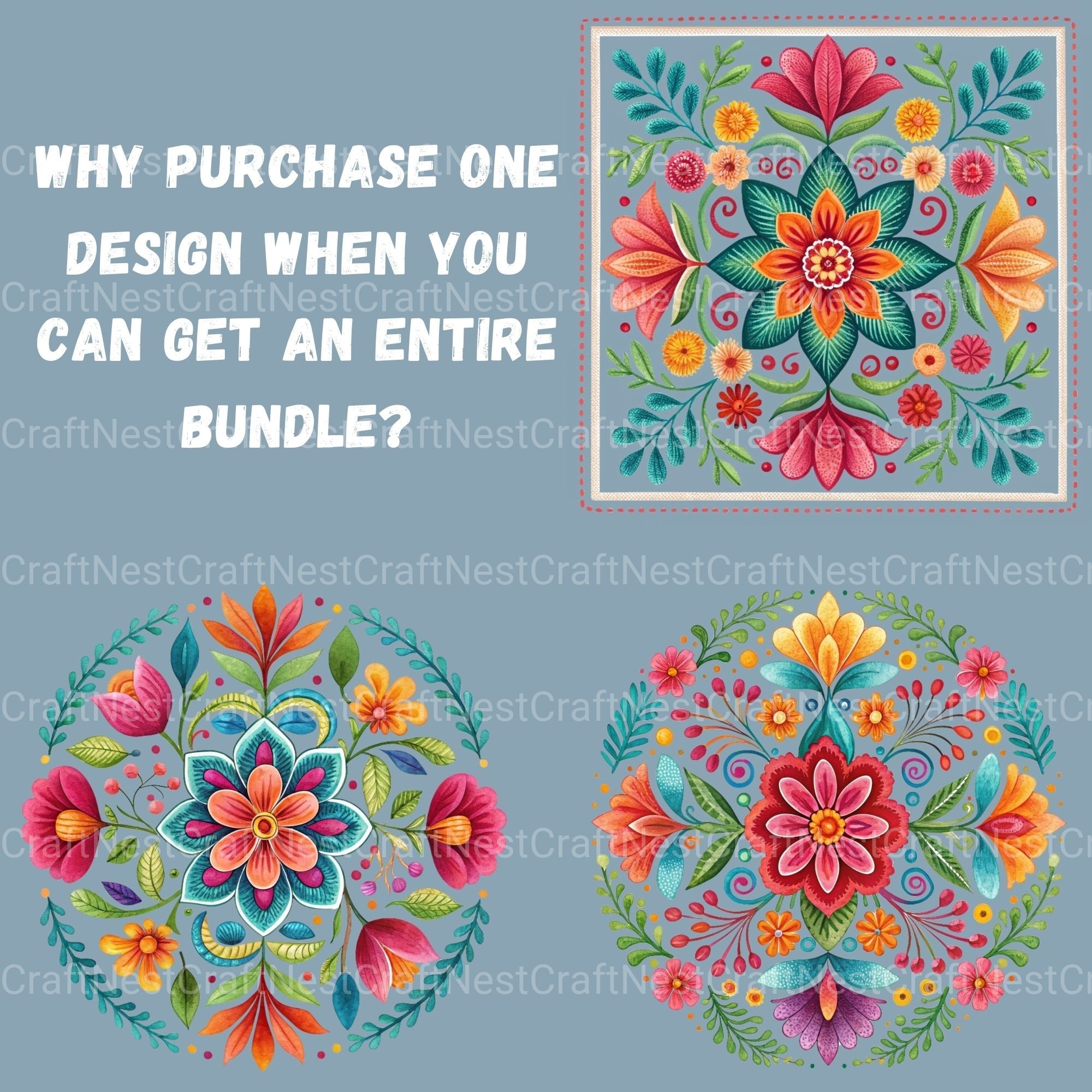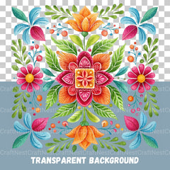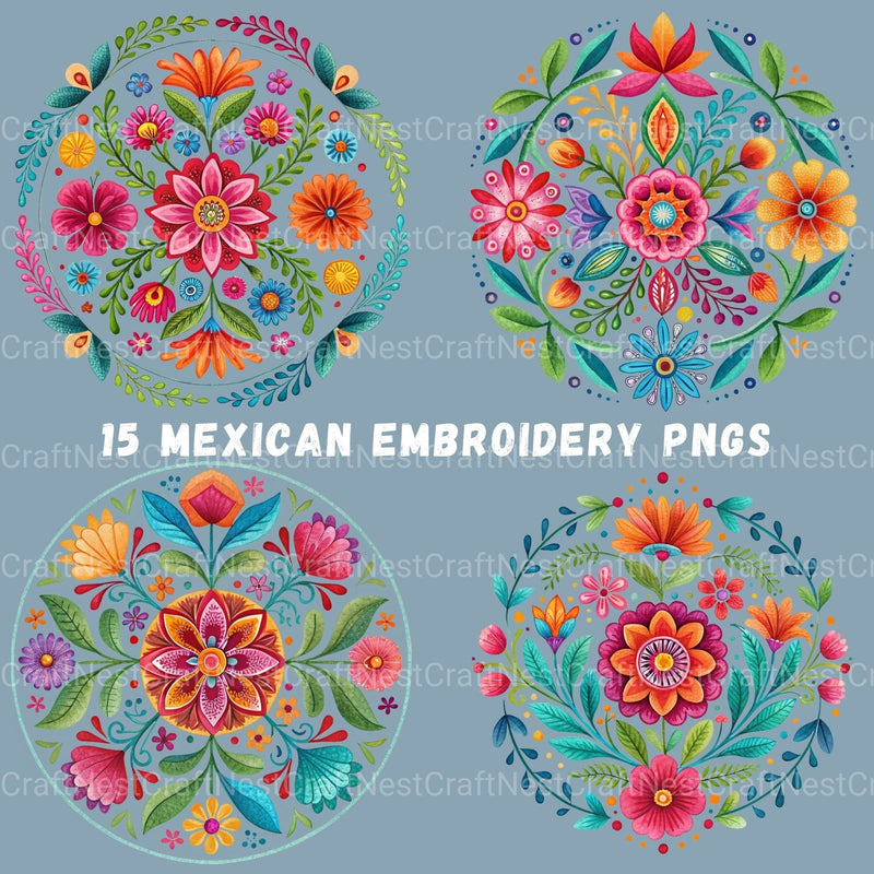 Stitch with this Mexican Embroidery Flowers 15 Clipart Bundle, featuring embroidered Mexican flower designs, perfect for civilization flower crafts.