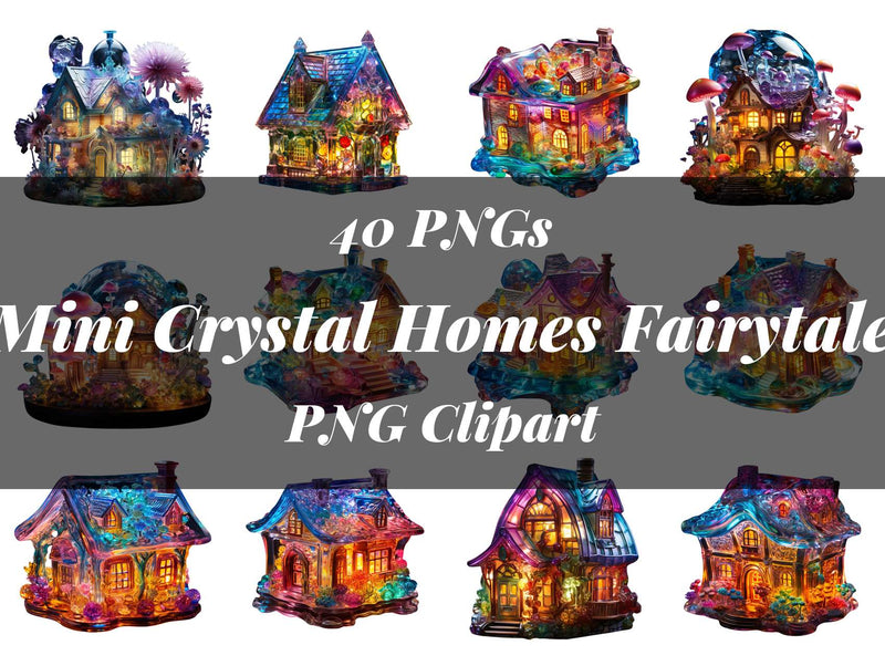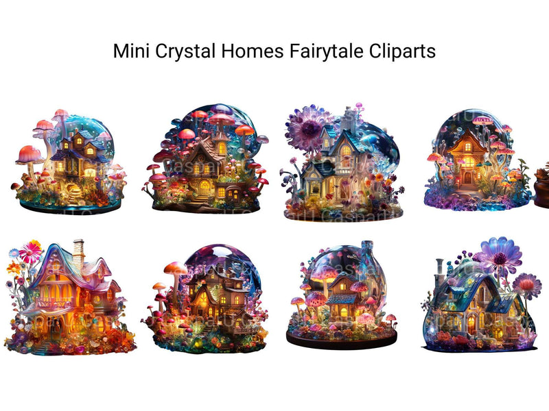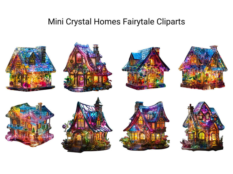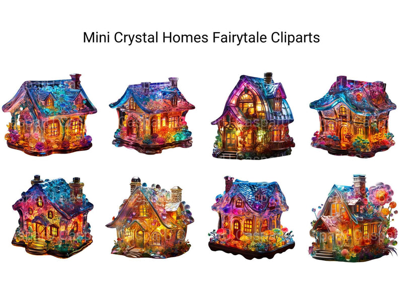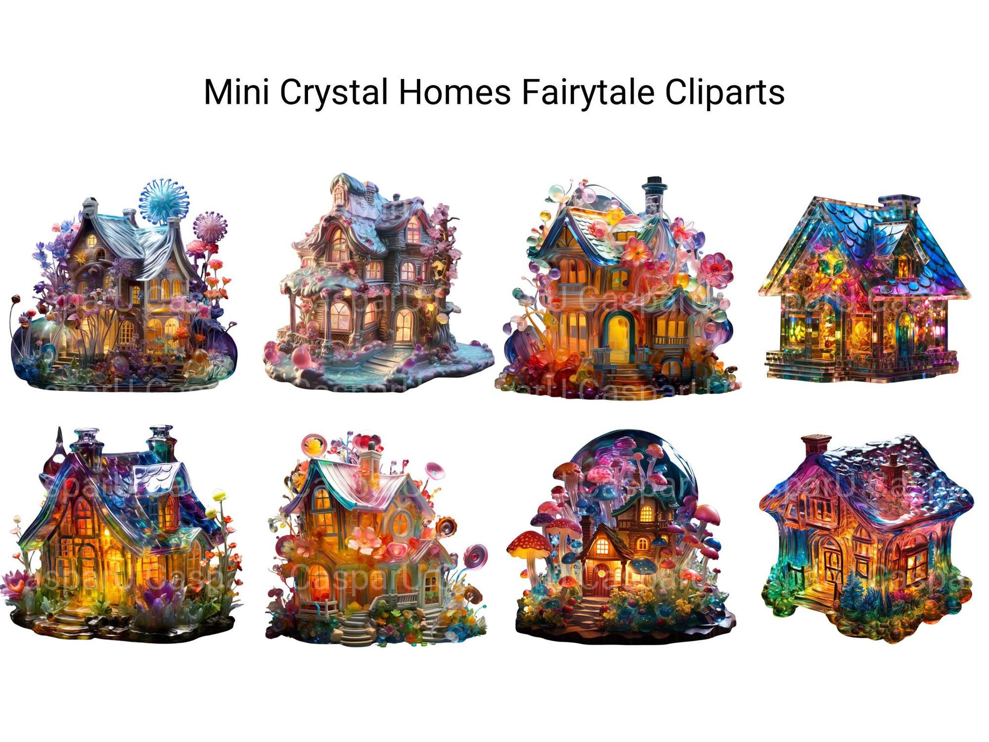 Dream in color with this Watercolor Mini Crystal Homes Clipart set, featuring enchanting house designs, ideal for fantasy crafts.