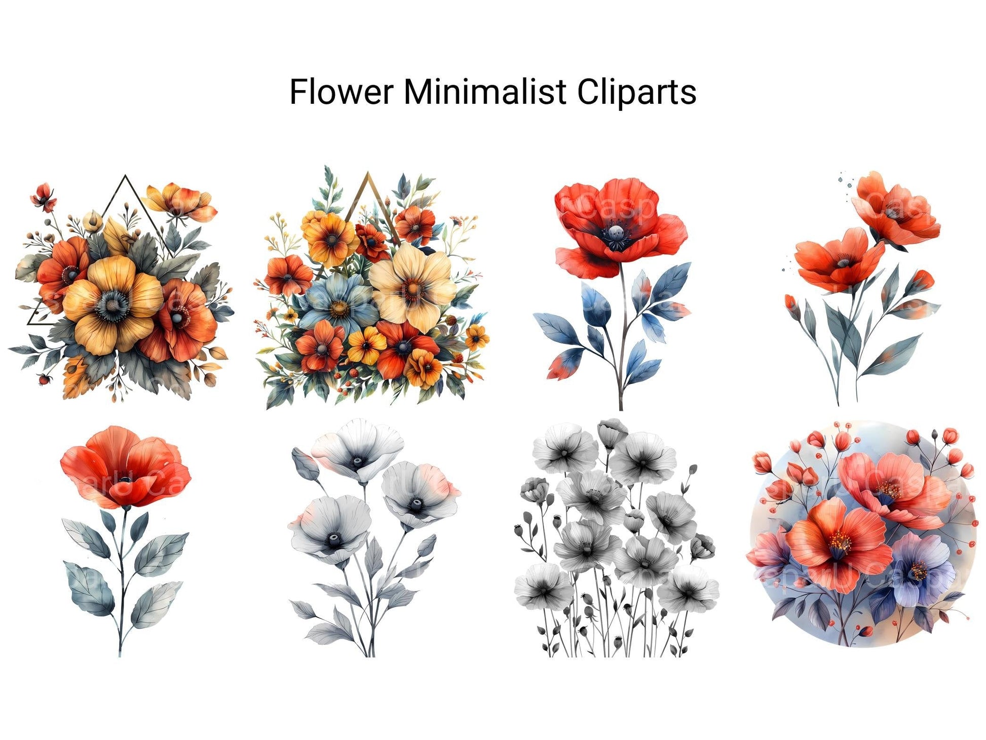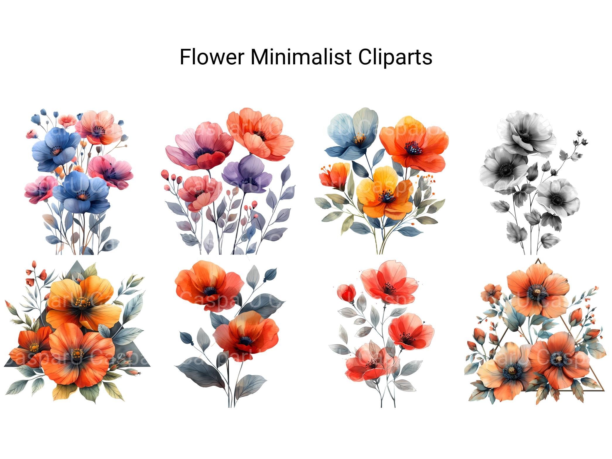 Experience the beauty of simplicity with our digital clip art series featuring minimalist flowers. These elegant clip arts capture the essence of floral beauty in clean and sleek designs, perfect for adding a modern touch to your digital artwork, stationery, and designs. Whether you're creating minimalist wedding invitations or designing contemporary graphics, these minimalist flower clip arts will elevate your projects with their understated elegance.