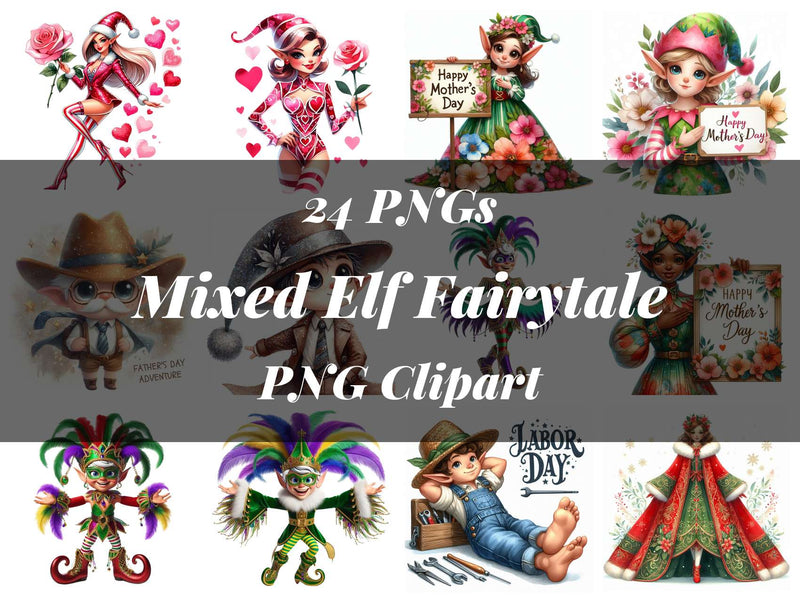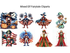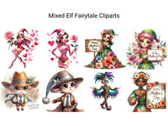 Dance with magic using this Mixed Elf Clipart set, featuring playful elf designs, perfect for fantasy projects.