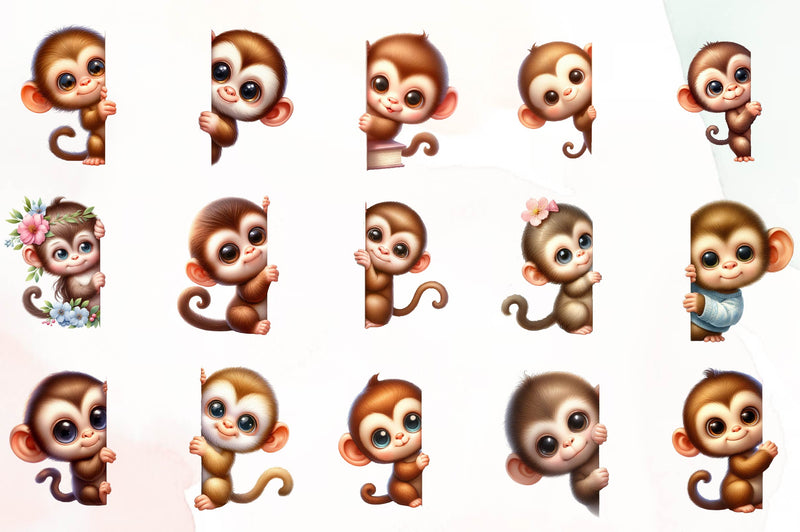 Swing with this Monkey Peeking Around Corner Clipart Bundle, featuring playful monkey designs, ideal for jungle animal crafts.