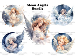 Bask in the celestial glow with our Moon Angels clip art. These ethereal digital illustrations portray angels under the moonlight, with shimmering stars, crescent moons, and nocturnal creatures adding a touch of magic and mystery to your designs, perfect for adding a dreamy and mystical atmosphere to your projects, whether for fantasy-themed artwork, celestial events, or lunar celebrations, capturing the enchantment of the night sky.