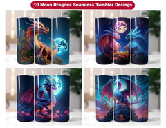 Illuminate your imagination with our Moon Dragons seamless tumbler wraps. Featuring ethereal dragon designs against the backdrop of the night sky, these wraps capture the mystique and magic of lunar landscapes. Whether you're a dreamer or simply love celestial motifs, let these enchanting wraps transport you to a world where dragons dance under the moonlight.