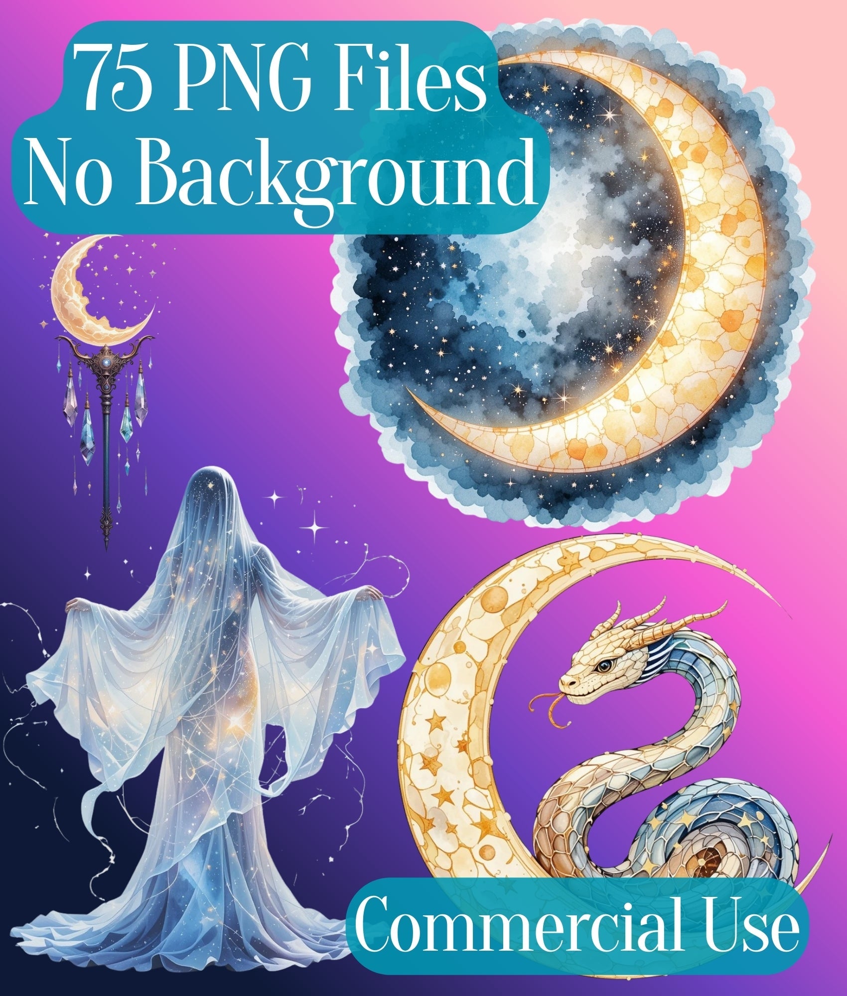Unleash your creativity with the Moon Goddess Clipart Bundle, featuring enchanting celestial designs perfect for mystical projects. Ideal for digital scrapbooking, invitations, and more, this collection brings a touch of magic to your creations. Elevate your art with these high-quality, versatile graphics, designed to inspire and captivate.