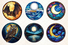 Moonlit Nights Stained Glass Circle Clipart Bundle