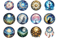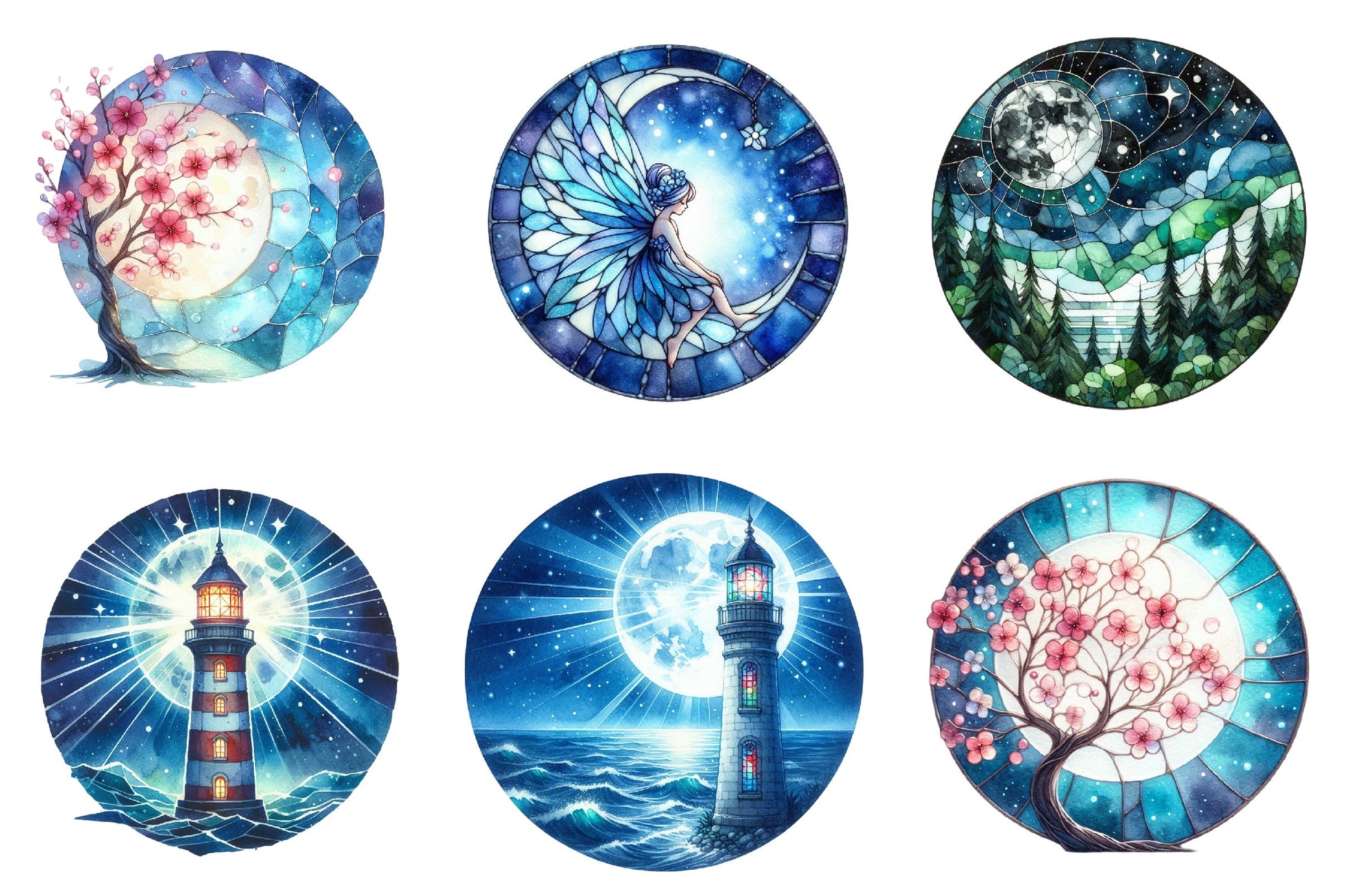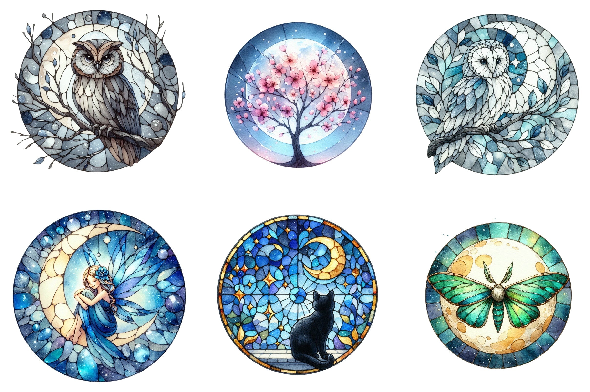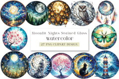 Illuminate your projects with the Moonlit Nights Stained Glass Clipart Bundle, featuring exquisite designs perfect for enchanting crafts and decor. Transform your creative visions with these vibrant, high-quality stained glass illustrations, ideal for digital and print projects. Perfect for artists, crafters, and designers seeking to add a touch of magic to their work. Discover endless possibilities with this versatile collection, designed to captivate and inspire.