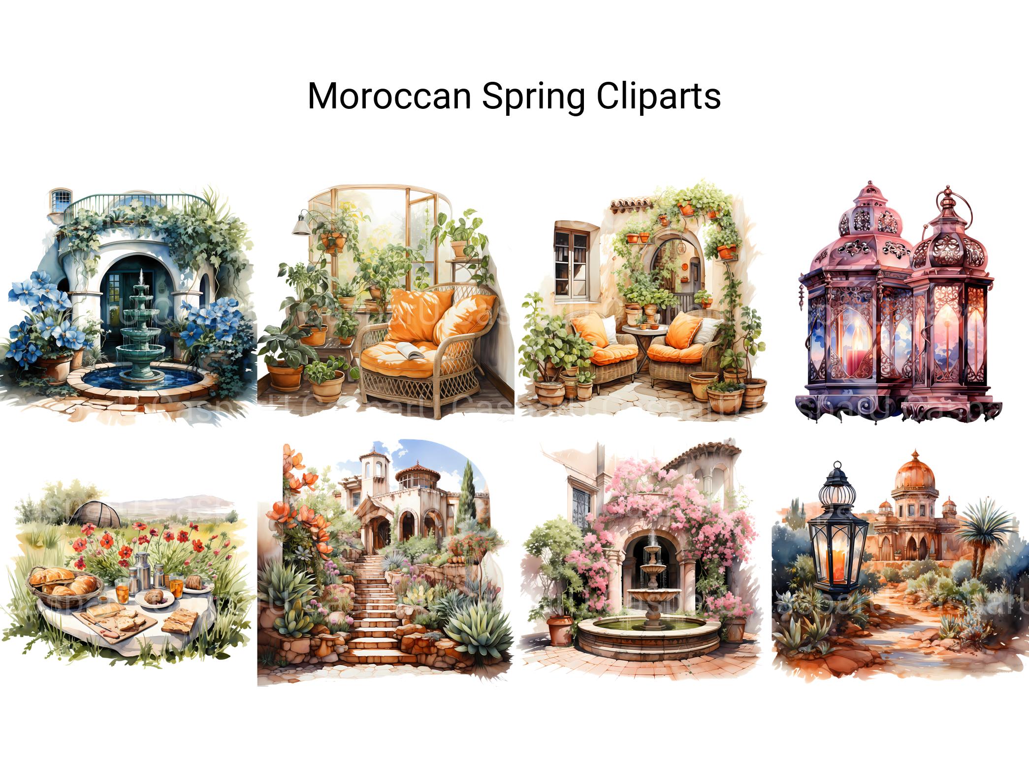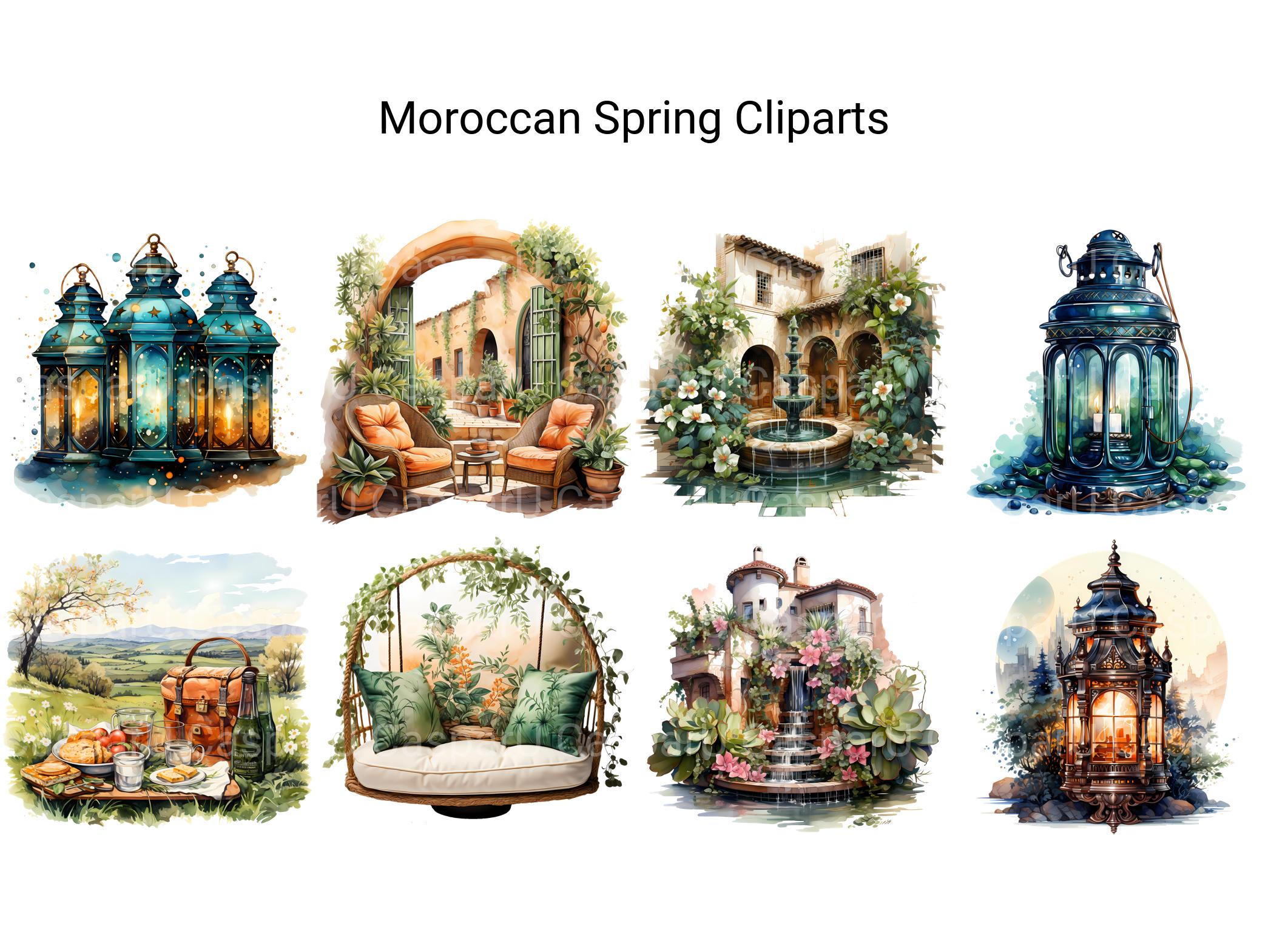 Immerse yourself in the vibrant colors and exotic patterns of Moroccan Spring with digital clip art featuring intricate designs inspired by Moroccan culture and architecture. From ornate tiles to intricate motifs, these colorful images capture the richness and diversity of Moroccan design, perfect for adding a touch of exotic elegance to your spring projects. Let the vibrant hues and intricate patterns of Moroccan Spring transport you to the bustling souks and tranquil riads of Morocco, inviting viewers to embark on a journey of discovery and delight.