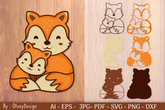 Mother and Baby Fox Layered Papercut SVG Bundle