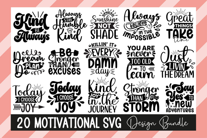 Motivate with this Motivational 25 Inspirational Bundle, featuring 25 inspiring designs, perfect for uplift crafts.