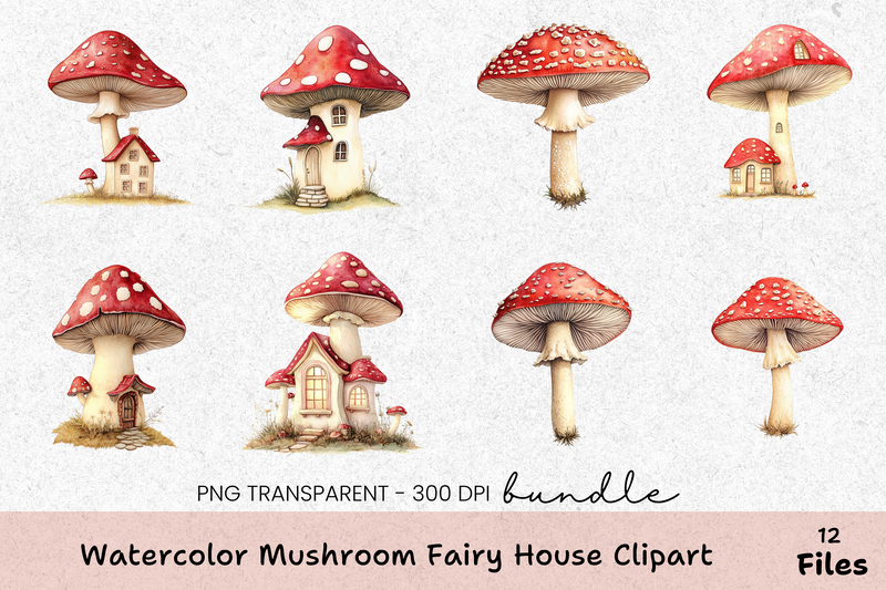 Transform your projects with the Mushroom Fairy House Clipart Bundle, featuring whimsical fairy house designs perfect for enchanting crafts and magical decor.