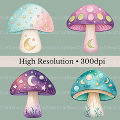 Cosmic with this Mushrooms Celestial 15 Clipart Bundle, featuring celestial mushroom designs, ideal for mushroom space crafts.