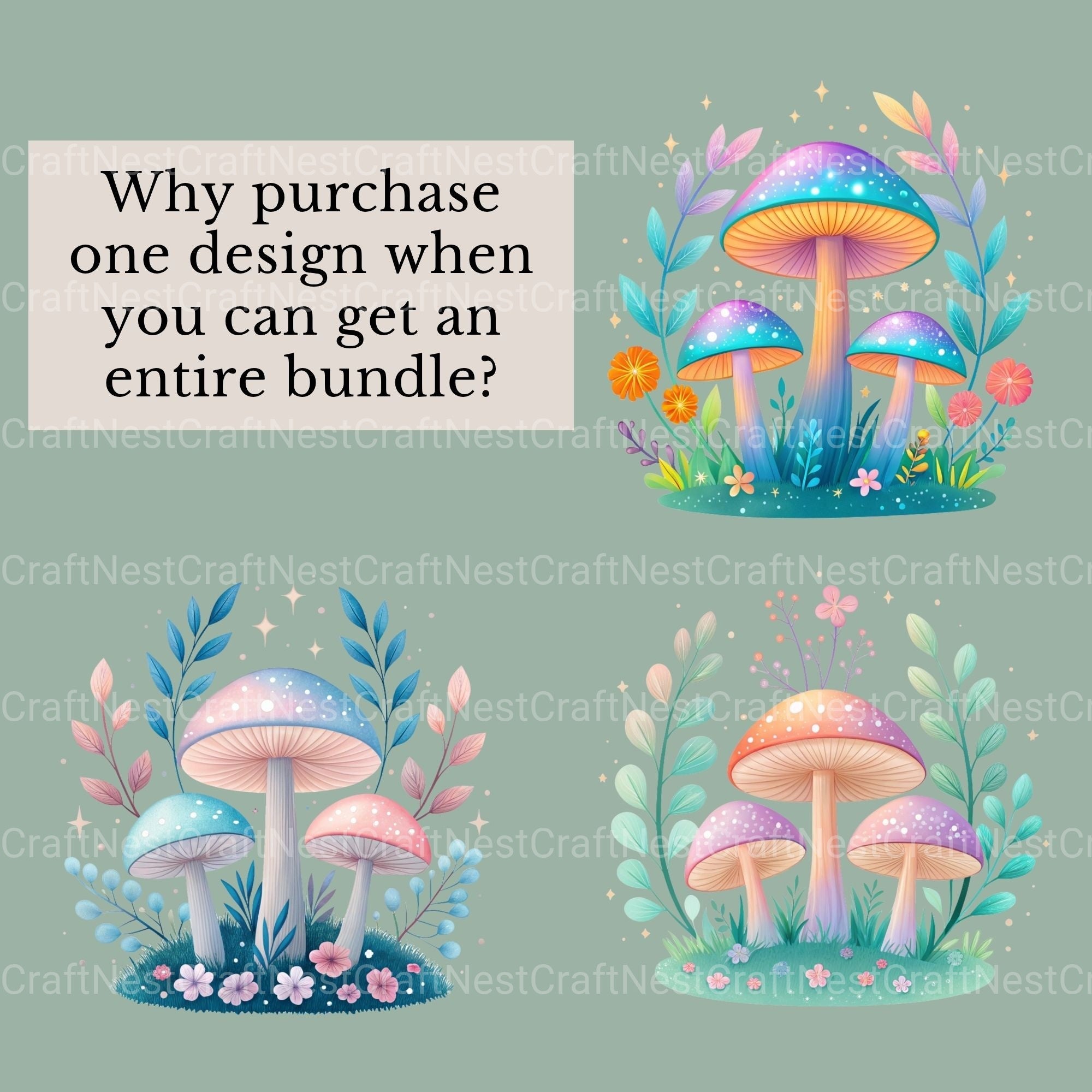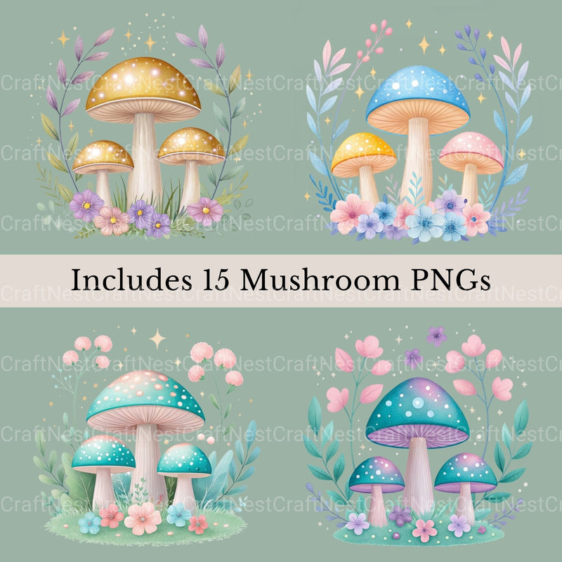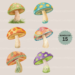 Grow with this Mushrooms 15 Clipart Bundle, featuring mushroom designs, ideal for mushroom nature crafts.