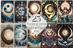 Divine with this Mystical Moon Tarot Card Clipart Bundle, featuring celestial fortune designs, perfect for lunar mystical crafts.