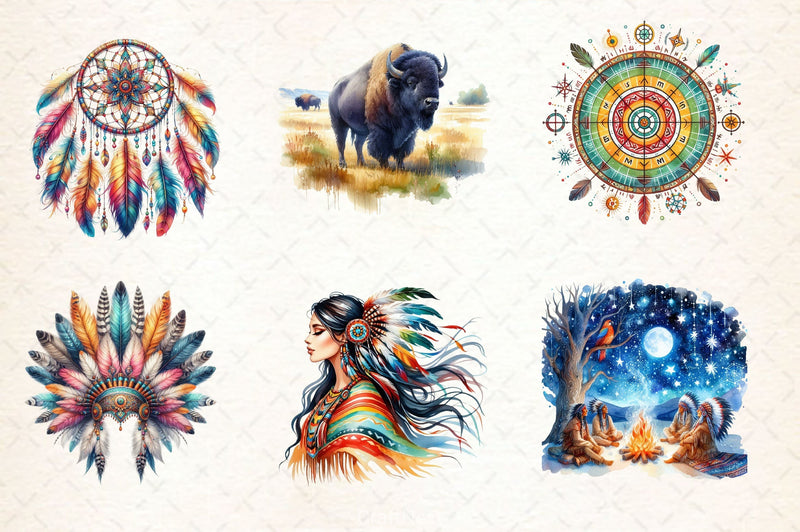 Honor with this Native American Heritage Clipart Bundle, featuring indigenous cultural designs, perfect for heritage celebration crafts.