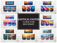 Cast off into Easter delight with our Nautical Easter digital mug wraps. These charming designs feature cute nautical characters and maritime patterns, capturing the essence of oceanic adventures, making them a delightful addition to your mug collection and a perfect way to infuse your mornings with the playful spirit of Easter by the sea.