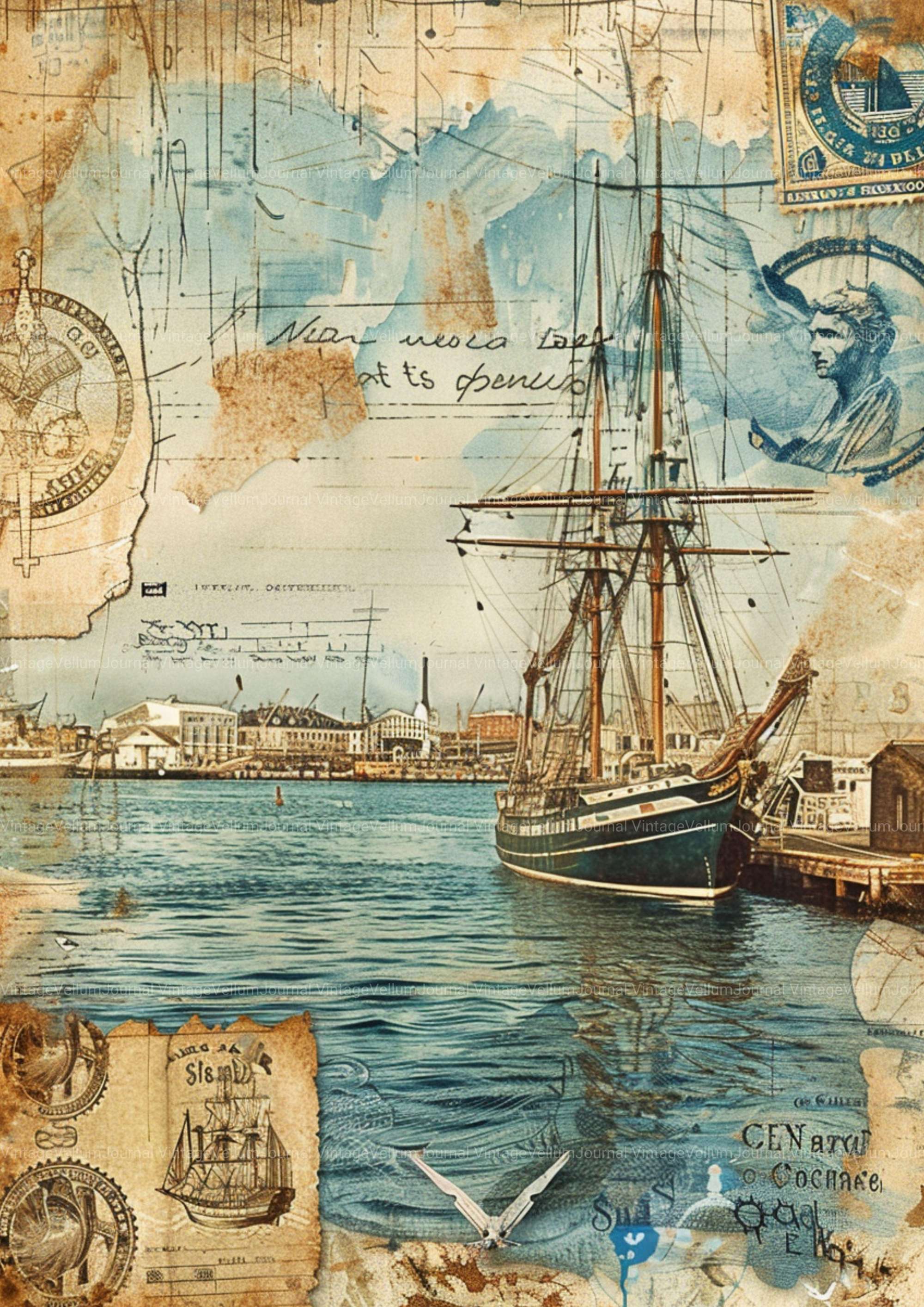 Set sail with this Nautical Journey digital junk journal, filled with maritime motifs and sea-inspired textures, ideal for a scrapbook of adventures.