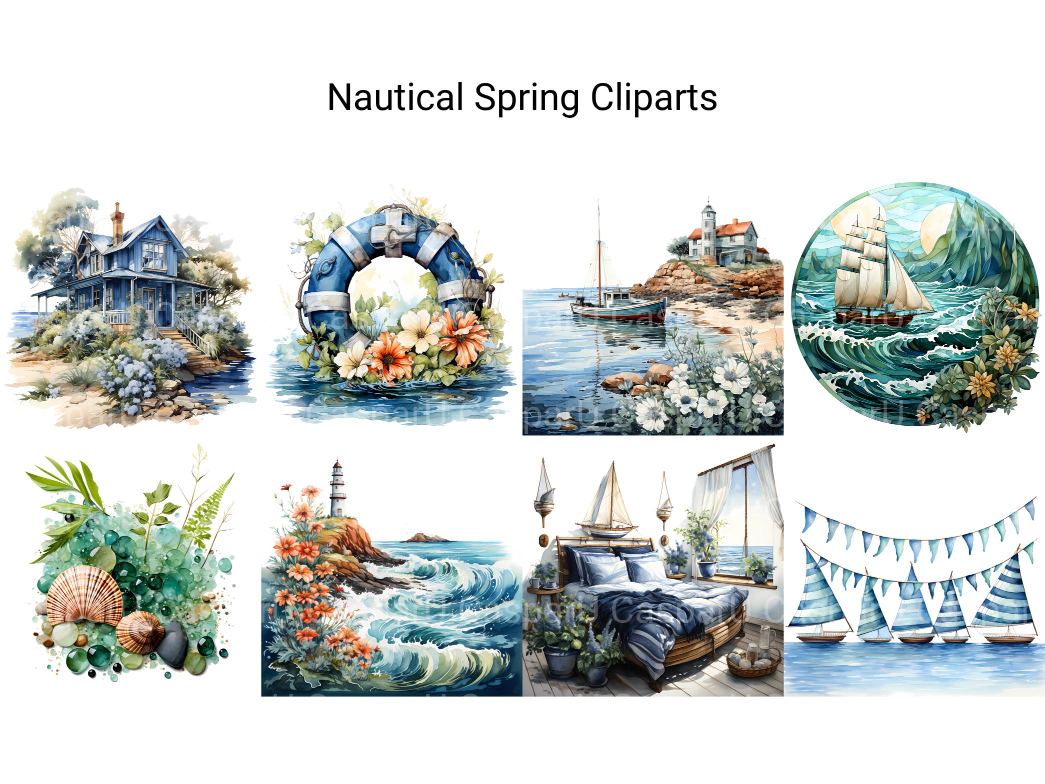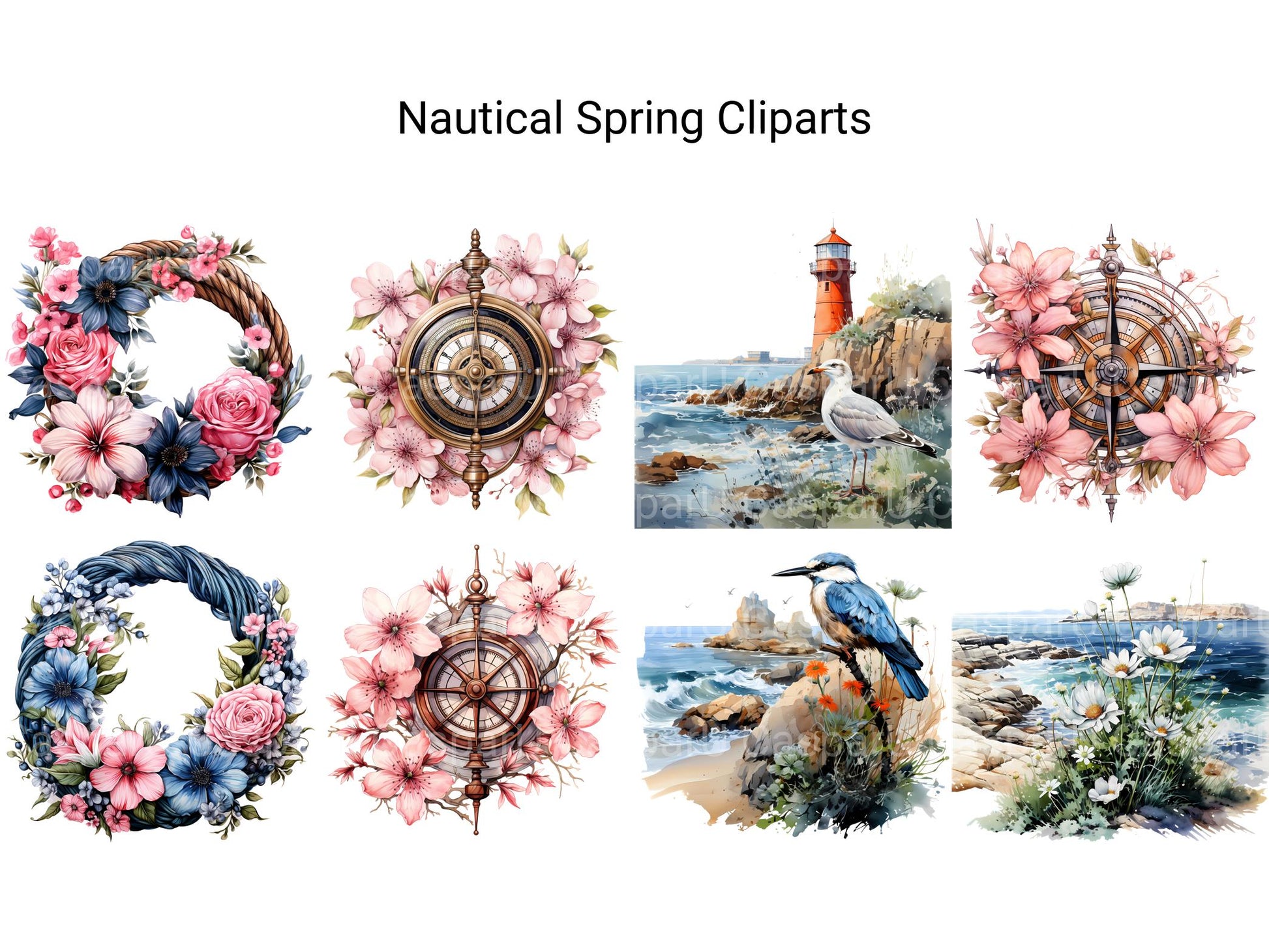Set sail on a maritime adventure with Nautical Spring digital clipart featuring classic nautical motifs and coastal-inspired designs. From anchor motifs to sailor stripes, these charming images capture the timeless allure of nautical style, perfect for adding a touch of coastal charm to your spring projects. Let the breezy elegance and nautical flair of Nautical Spring evoke memories of seaside vacations and ocean breezes, inviting viewers to embark on a voyage of nautical nostalgia.