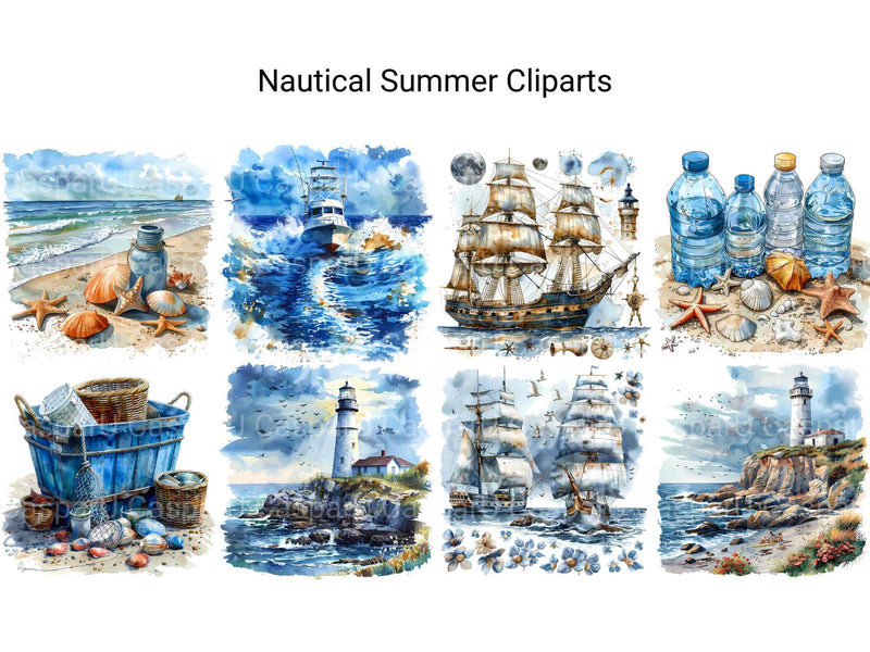 Sail into summer with our Nautical Summer clipart, featuring charming illustrations of boats, anchors, and seaside scenes. These designs capture the spirit of the ocean and coastal living, perfect for creating a relaxed and maritime summer vibe.