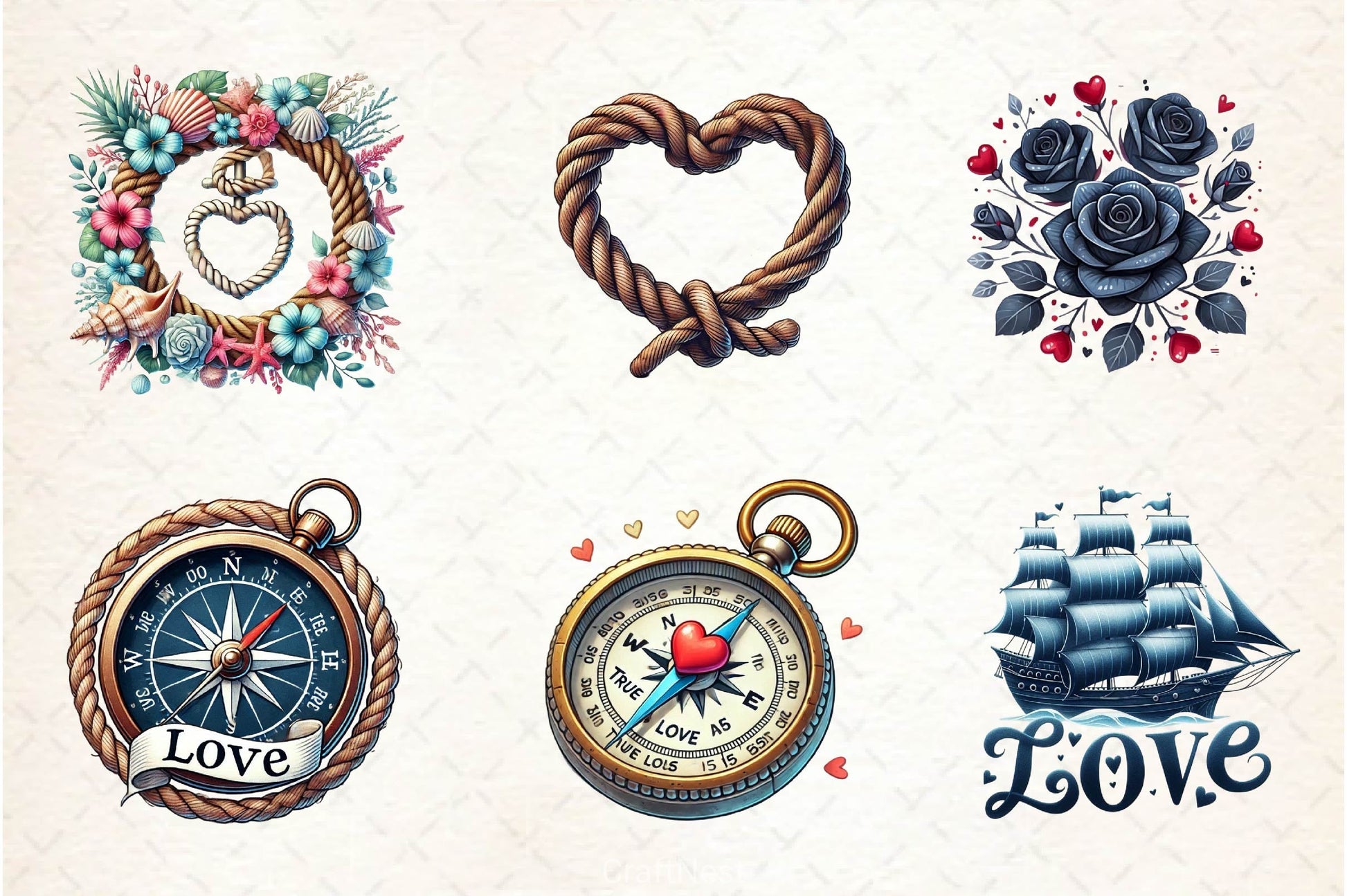 Sail with this Navy Valentine Clipart Bundle, featuring nautical romantic designs, perfect for maritime love crafts.