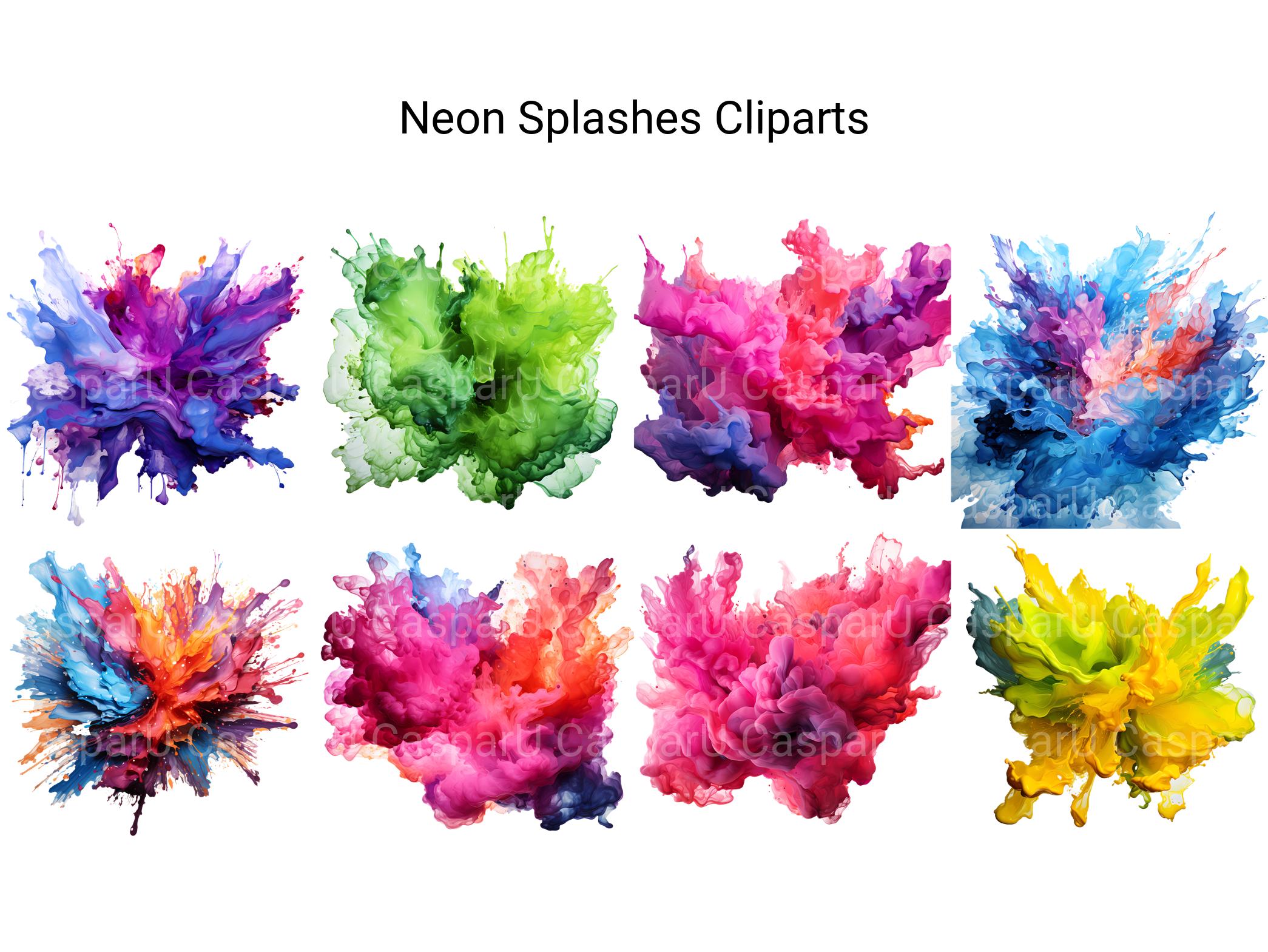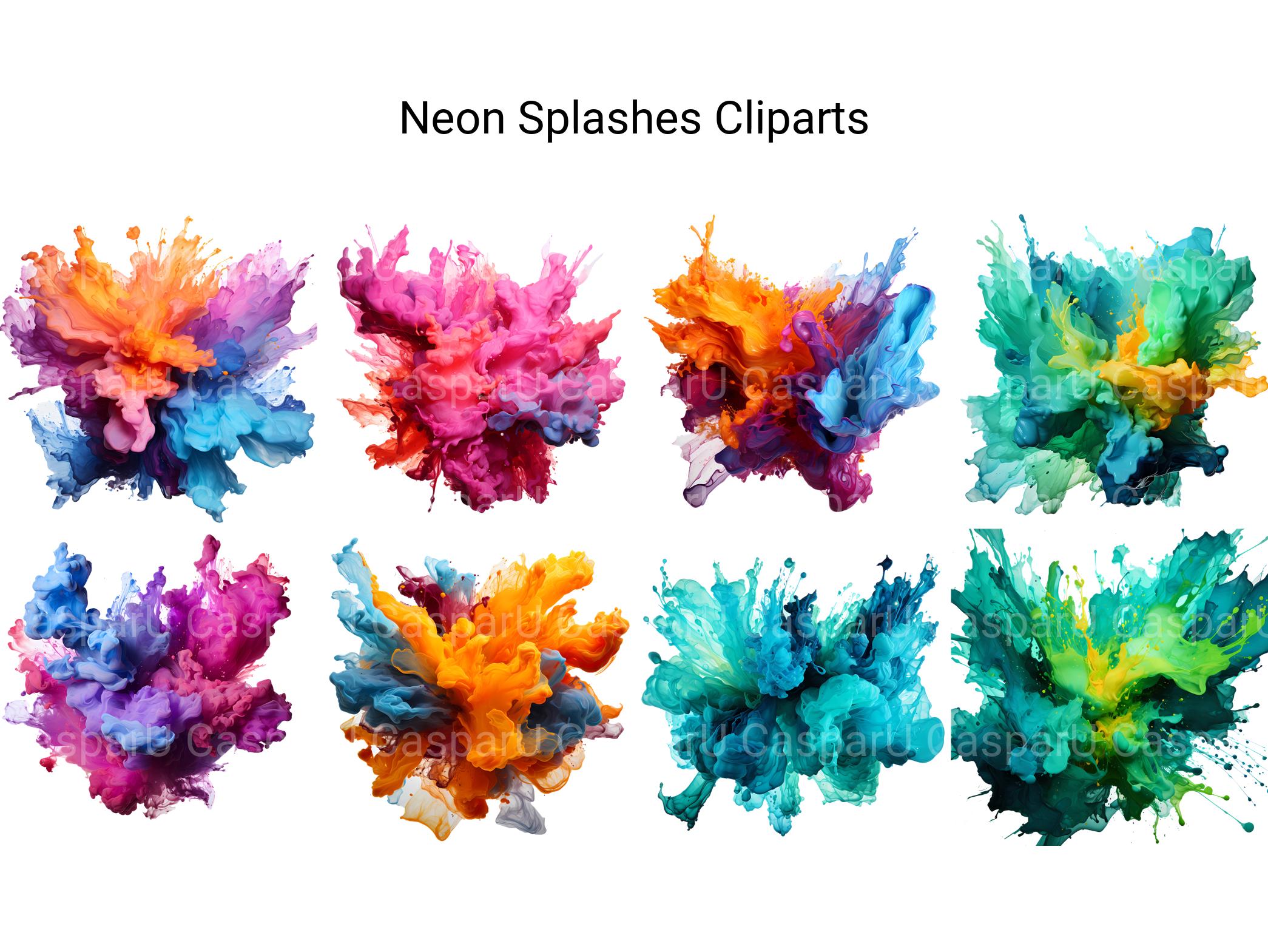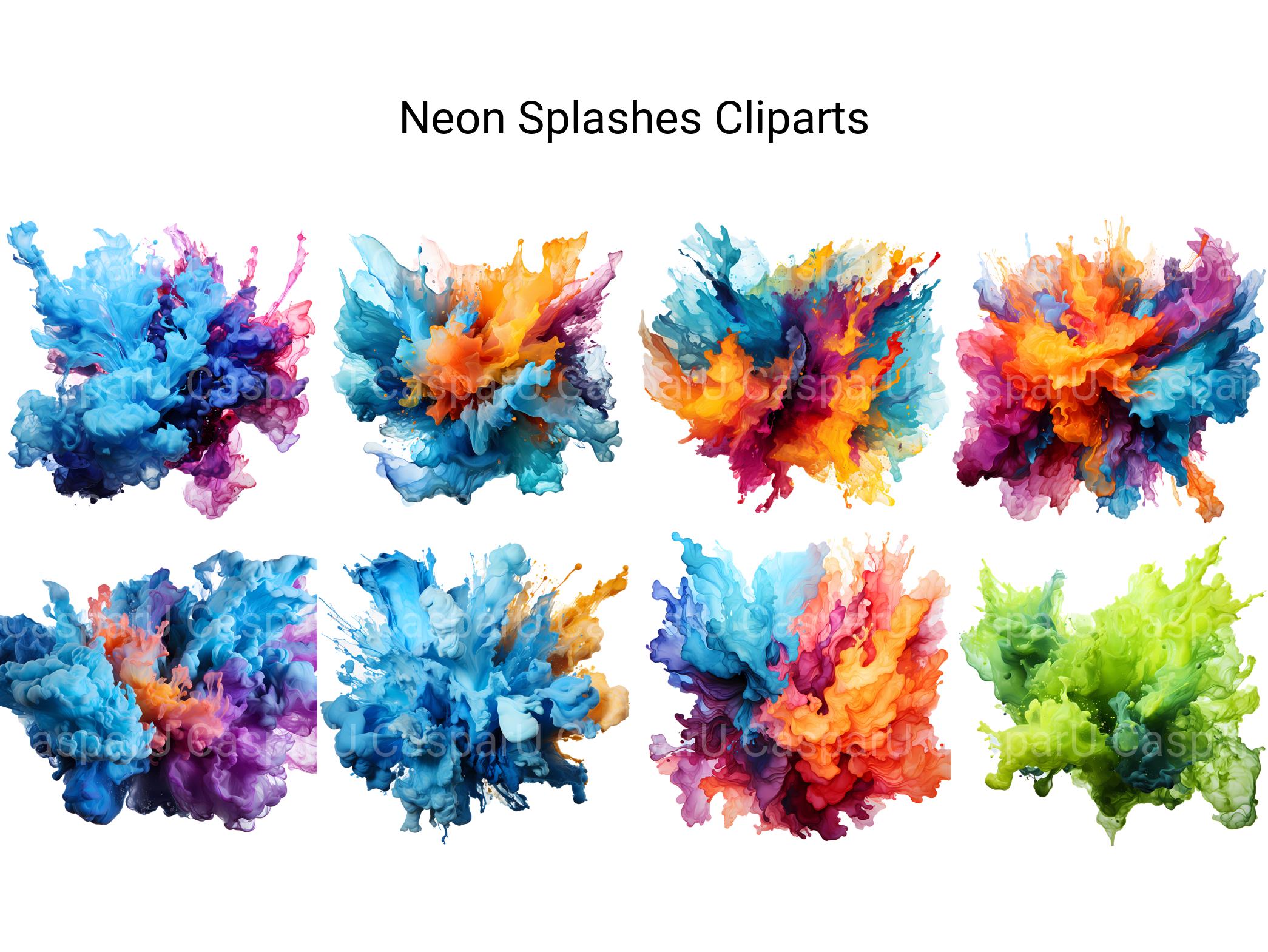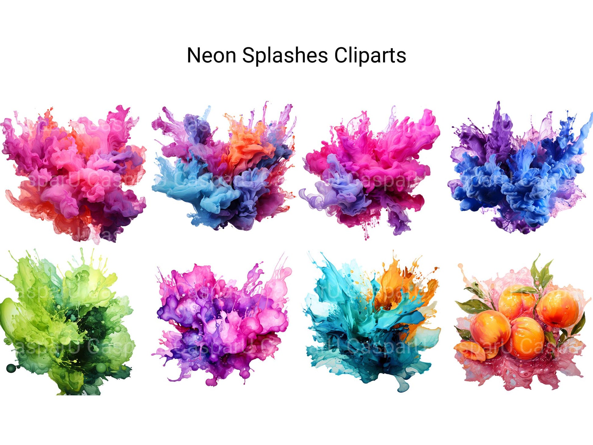 Immerse yourself in the vibrant energy of neon with our Neon Splashes clip art. These digital illustrations feature bold neon colors and dynamic splashes, perfect for adding a pop of electrifying color and modern flair to your projects, whether for posters, social media graphics, or urban-themed designs, infusing your creations with the vibrant glow and captivating allure of neon artistry.