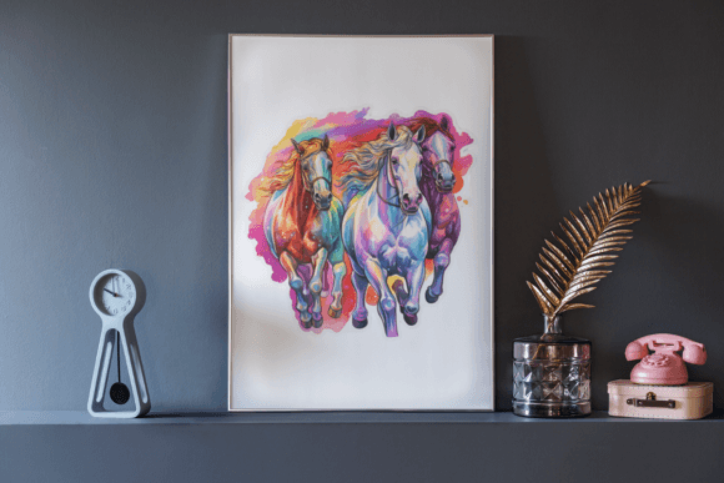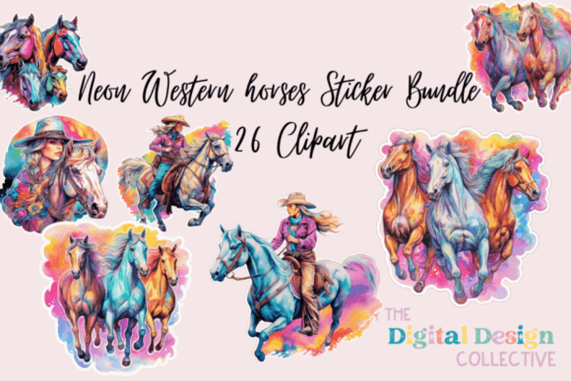 Neon Western Horses Sticker Clipart Bundle