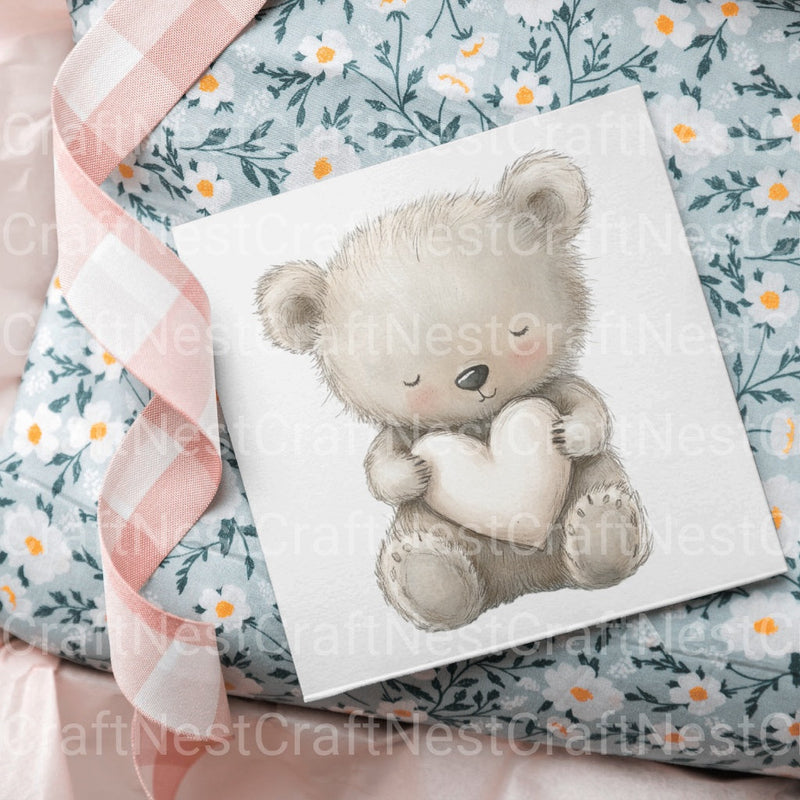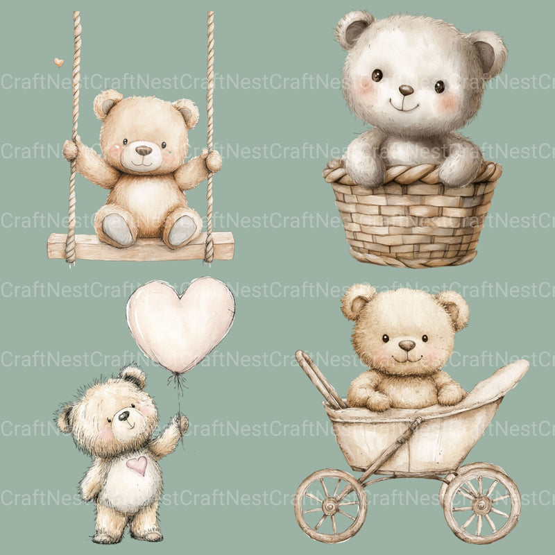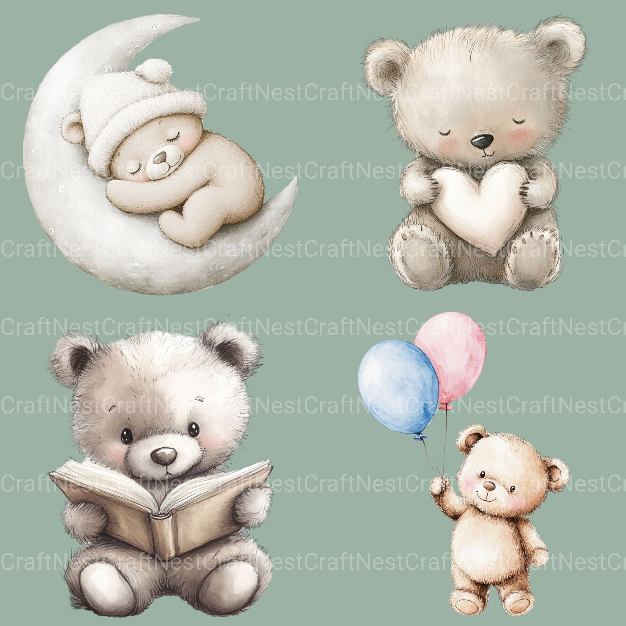 Cuddle with this Neutral Bear Nursery 12 Clipart Bundle, featuring neutral nursery bear designs, perfect for baby animal crafts.