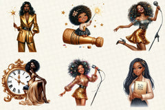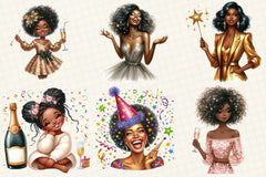 New Year Black American Girl Clipart Bundle