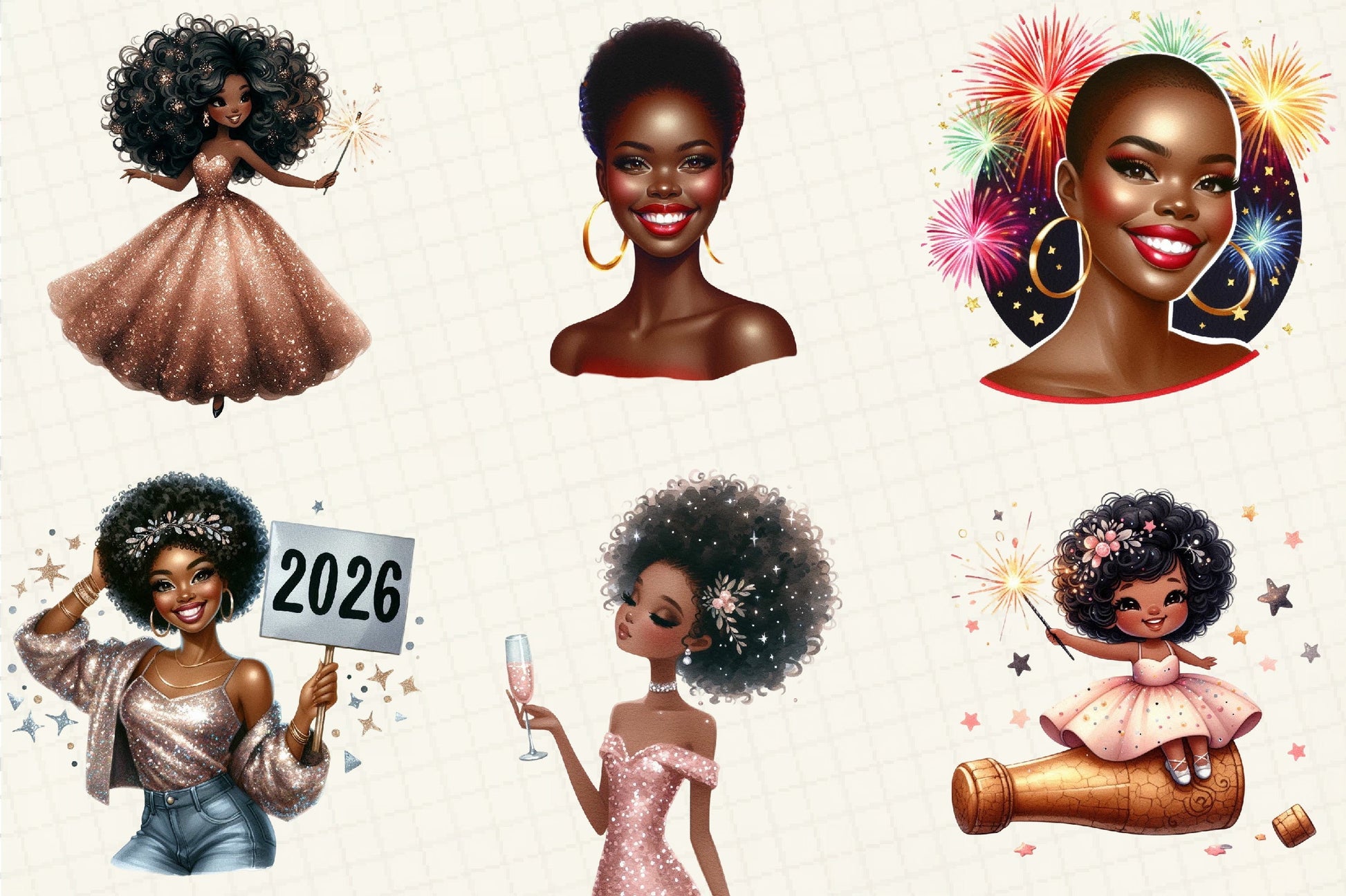Celebrate the New Year with our Black American Girl Clipart Bundle, perfect for adding a unique touch to your creative projects. This diverse collection features charming illustrations that are ideal for planners, scrapbooking, and digital designs. Enhance your crafts with these vibrant and inclusive images, perfect for personal and commercial use. Make your projects stand out with this exclusive bundle, designed to inspire creativity and inclusivity. Don't miss out on this must-have collection for the New Year!