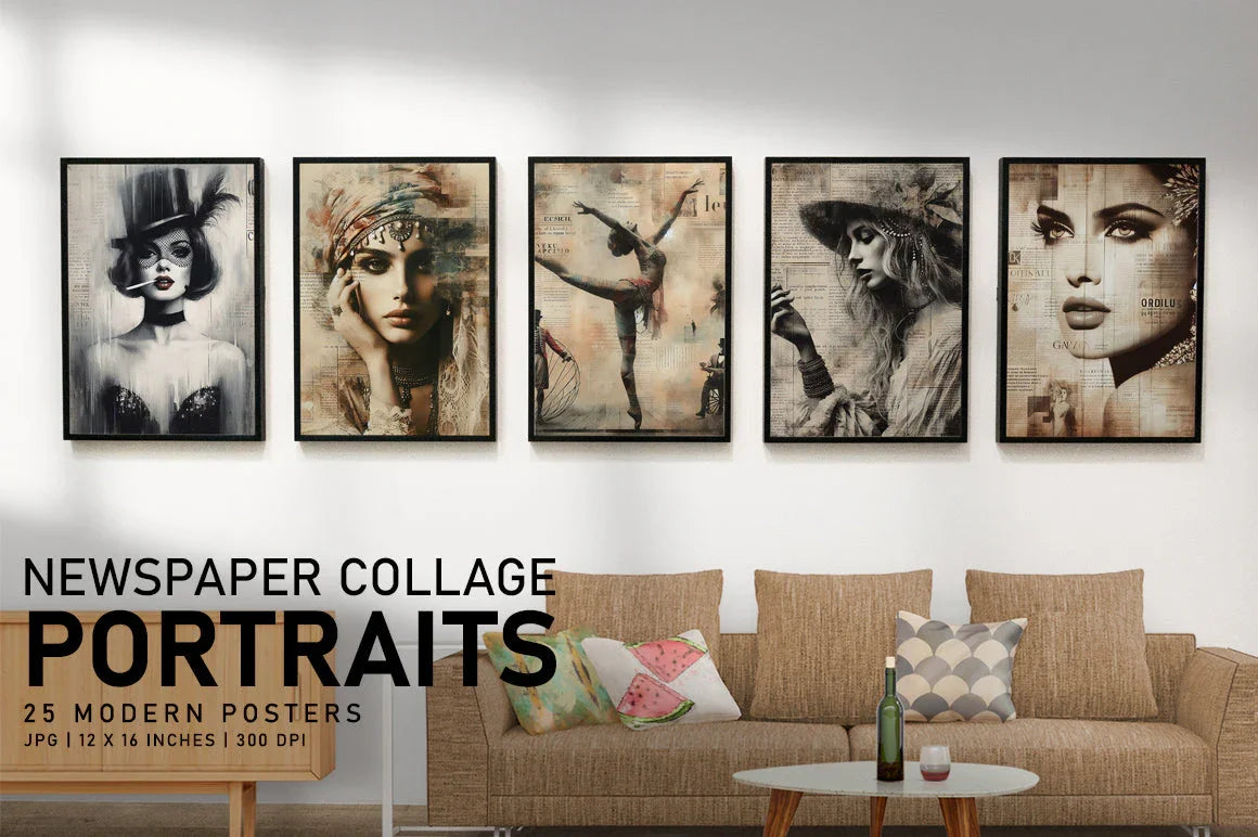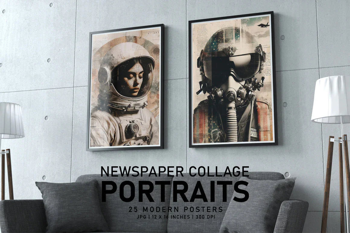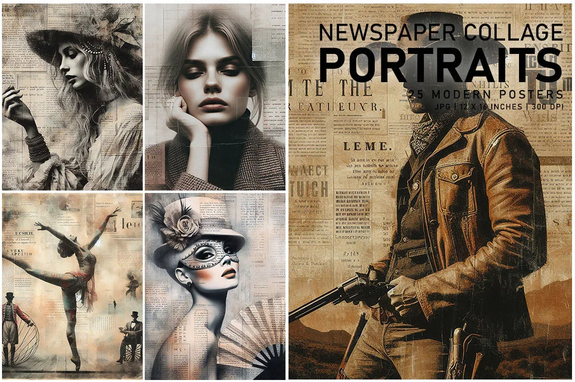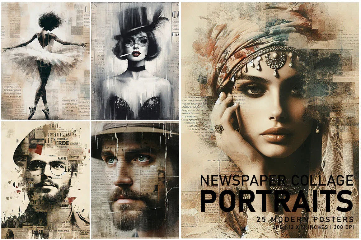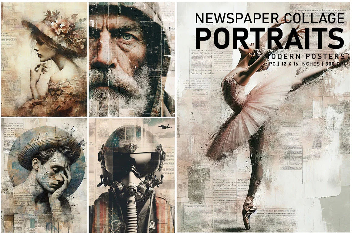 Transform your space with Newspaper Collage Portraits, featuring unique, handcrafted designs that blend art and history, perfect for adding a vintage touch to any room.