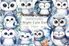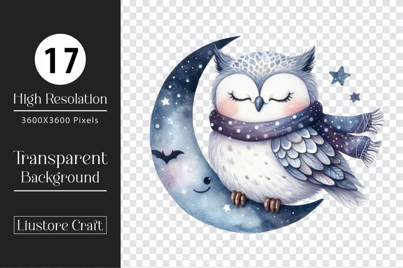 Adorable owls in nighttime settings for nocturnal animal projects.