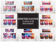 Experience the vibrant energy of the 90s with our Nineties Easter digital mug wraps. Adorned with bold graphics and vibrant hues, these wraps capture the essence of 90s pop culture. Sip from these retro-inspired mug wraps and immerse yourself in the nostalgia of the decade, ideal for anyone who loves the bold and eclectic style of 90s fashion and design.