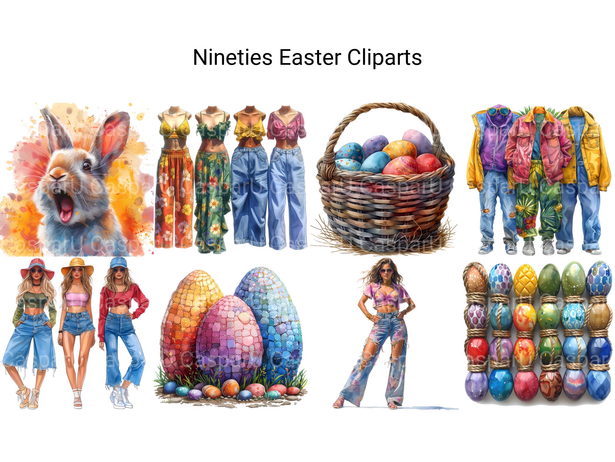 Take a trip down memory lane with Nineties Easter digital clip art, featuring nostalgic illustrations, retro designs, and vibrant colors that evoke the spirit of the 1990s. These fun and funky images capture the playful energy of the nineties' era, perfect for adding a retro vibe to your Easter projects. Let Nineties Easter transport you back to the heyday of the nineties, inviting viewers to reminisce and celebrate Easter with a dose of nineties nostalgia.