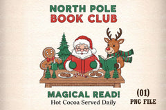 Discover the whimsical charm of the North Pole Book Club Lover Clipart Bundle, perfect for book-themed crafts and holiday projects. Featuring delightful illustrations of book-loving characters, this bundle is ideal for creating enchanting designs that capture the magic of reading. Perfect for digital scrapbooking, personalized gifts, and festive decorations.