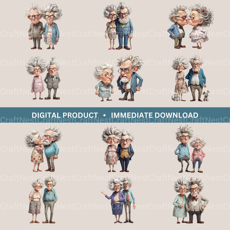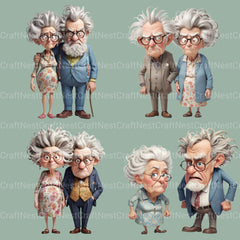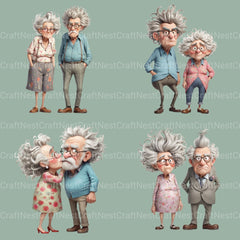 Laugh with this Old Funny Couple 12 Clipart Bundle, featuring humorous elderly couple designs, perfect for people quote crafts.
