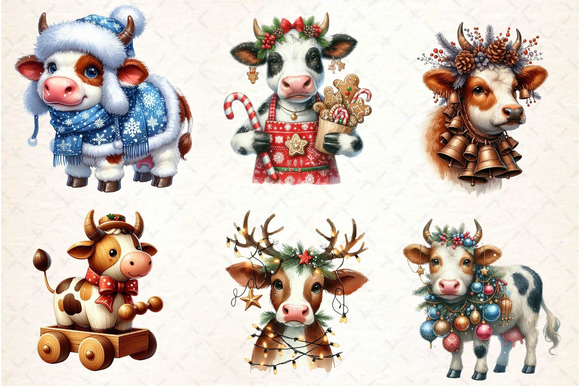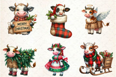 Old Rustic Christmas Cow Clipart Bundle