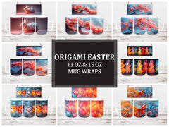 Delight in the intricate folds of origami artistry with our Origami Easter digital mug wraps. Featuring delicate paper folding designs and vibrant colors, these wraps bring a touch of Japanese-inspired elegance to your coffee or tea time. Add a dash of creativity to your beverage experience with these charming mug wraps, perfect for anyone who appreciates the beauty of traditional craftsmanship.