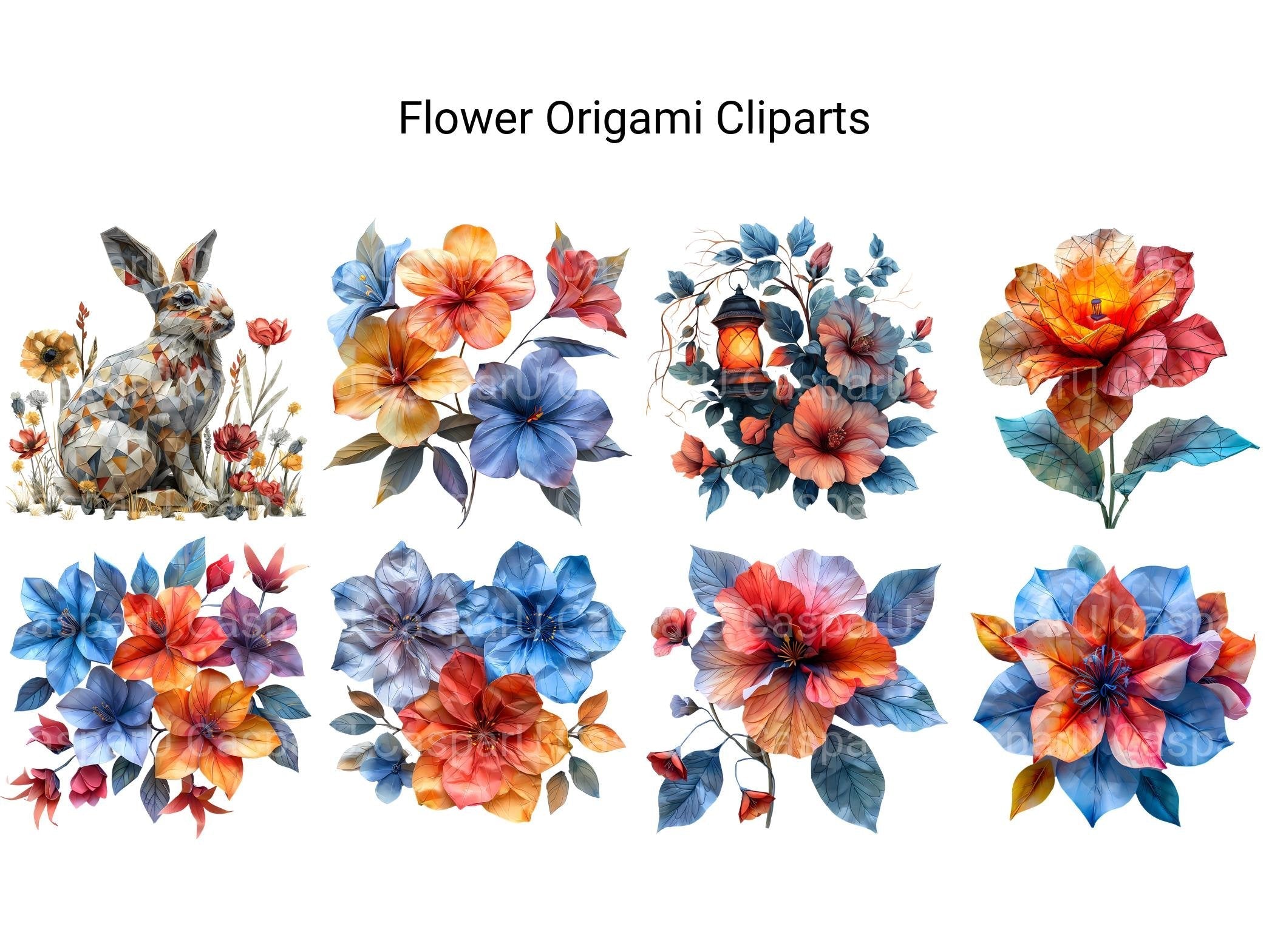 Unfold a world of creativity with our digital origami flower clip art collection. These charming clip arts feature intricate paper folding designs inspired by origami techniques, perfect for adding a touch of whimsy to your digital artwork, prints, and decorations. Whether you're creating origami-themed cards or designing playful illustrations, these origami flower clip arts will delight your audience and bring a sense of fun to your projects.