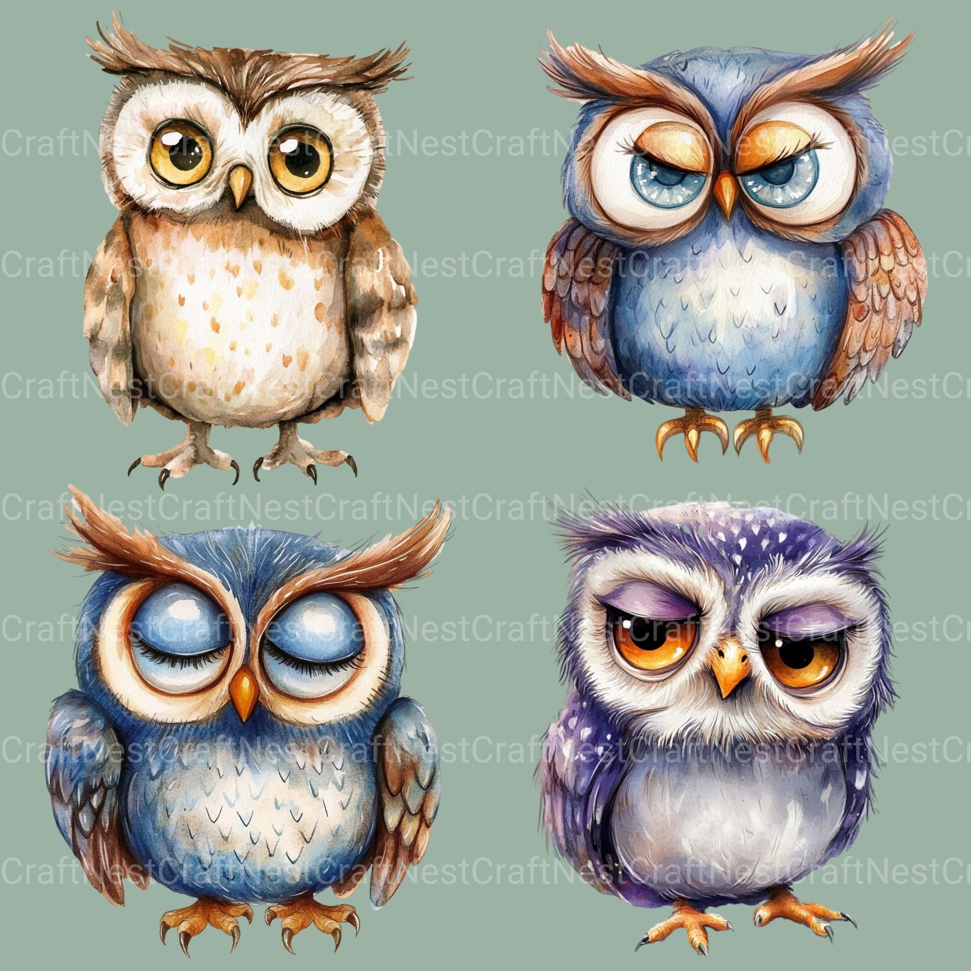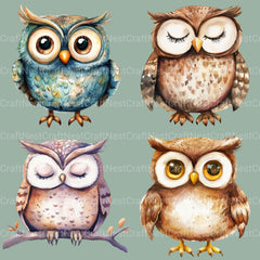 Hoot with this Owls 12 Clipart Bundle, featuring wise owl designs, perfect for bird nature crafts.