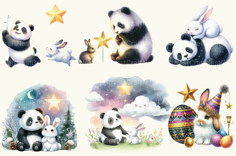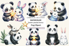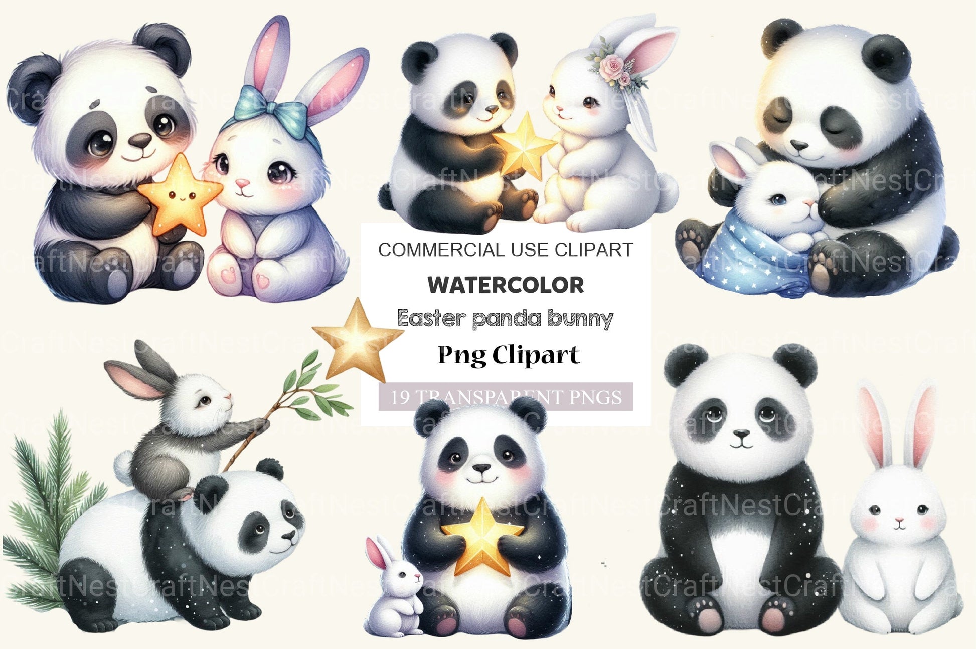 Cuddle with this Panda And Bunny Clipart Bundle, featuring adorable duo designs, perfect for friendship animal crafts.